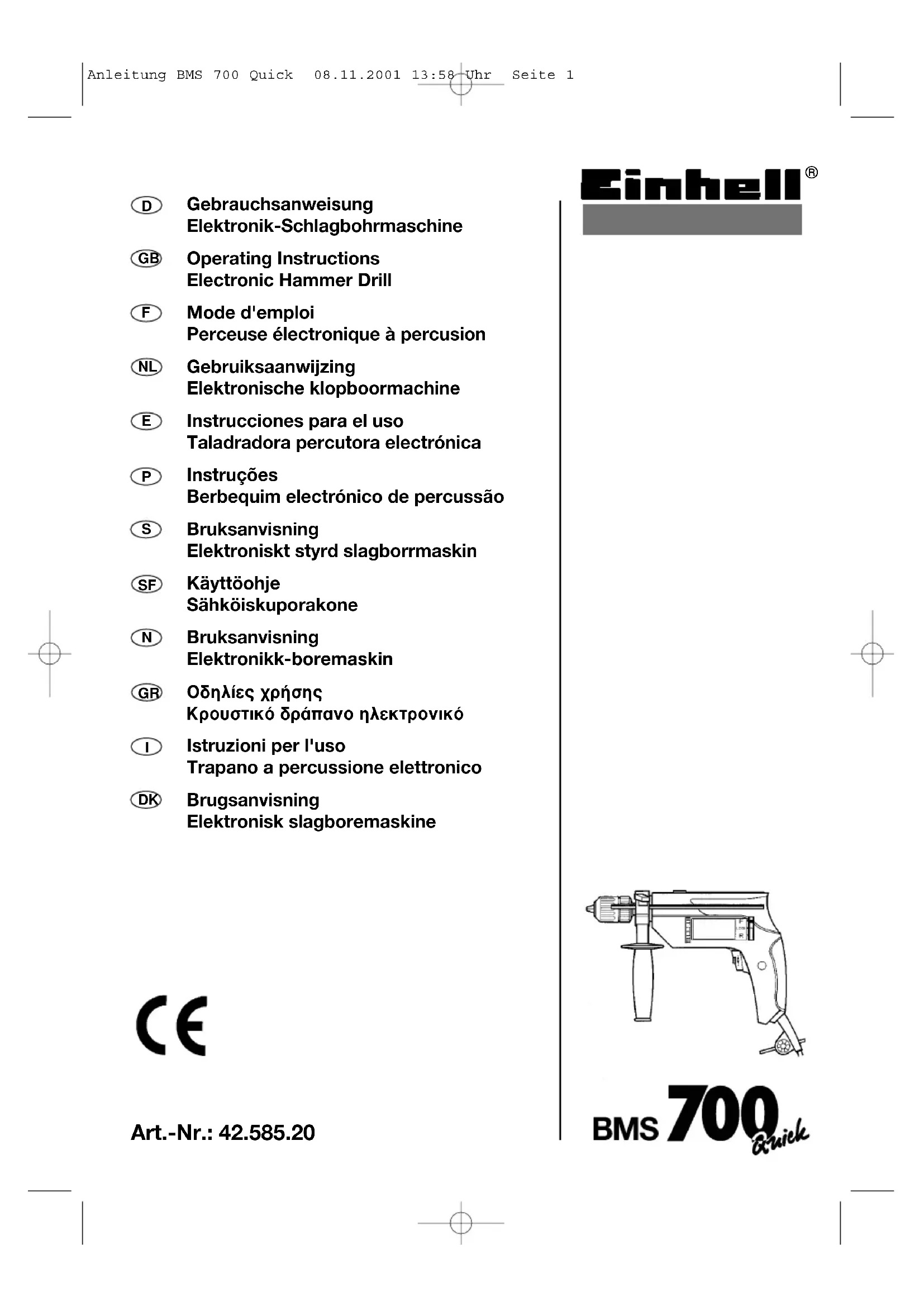 BMS 700 Quick - Perceuse EINHELL - Notice d'utilisation et mode d'emploi gratuit