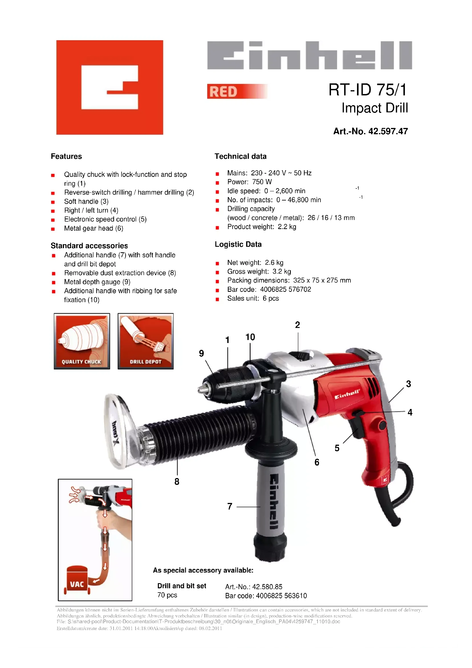 RT-ID 75 - Perceuse EINHELL - Notice d'utilisation et mode d'emploi gratuit