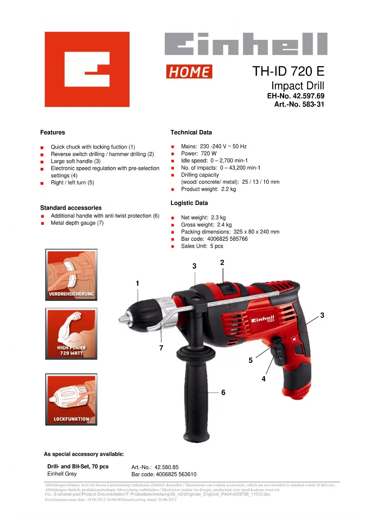 TH-ID 720 E - Perceuse EINHELL - Notice d'utilisation et mode d'emploi gratuit