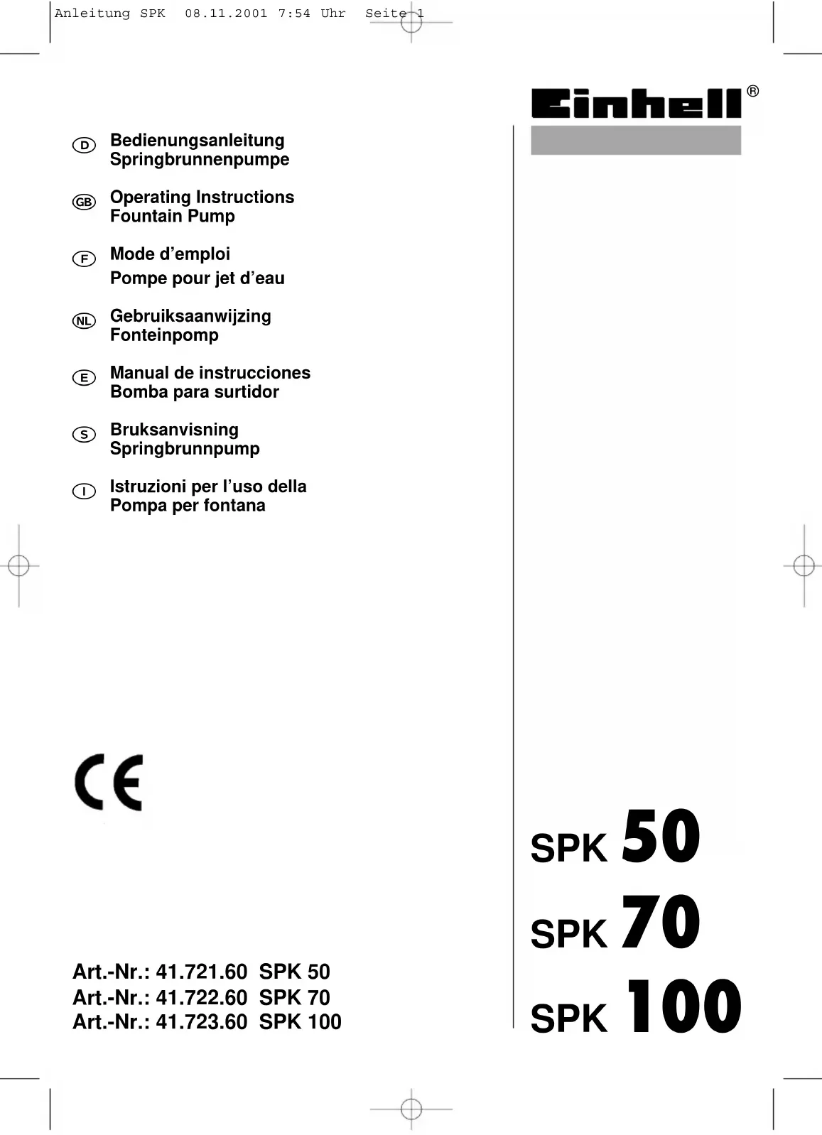 Retrouvez gratuitement la notice de l'appareil SPK 50 EINHELL au format PDF.