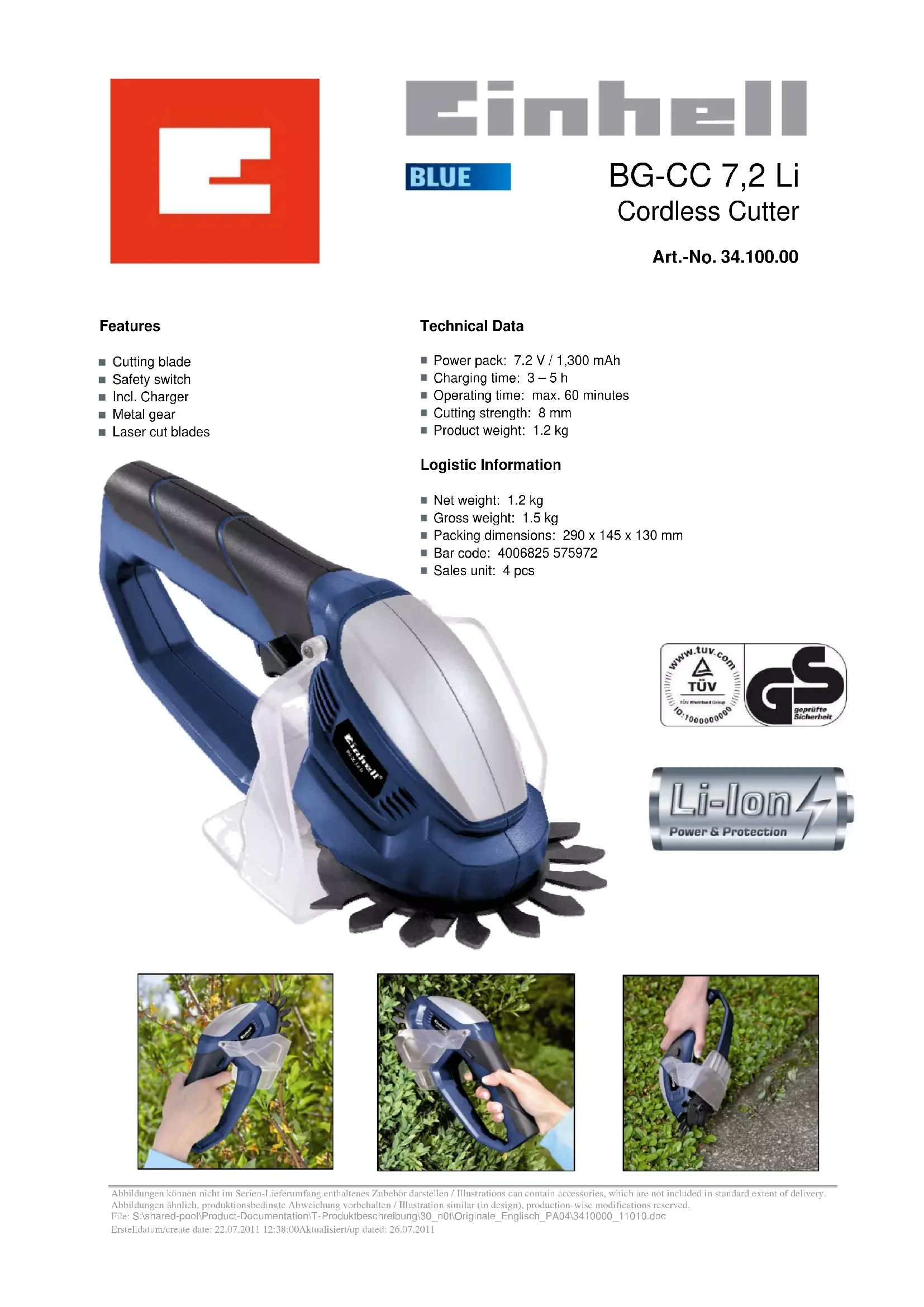 BG-CC 7 2 Li - Coupe-herbe EINHELL - Notice d'utilisation et mode d'emploi gratuit