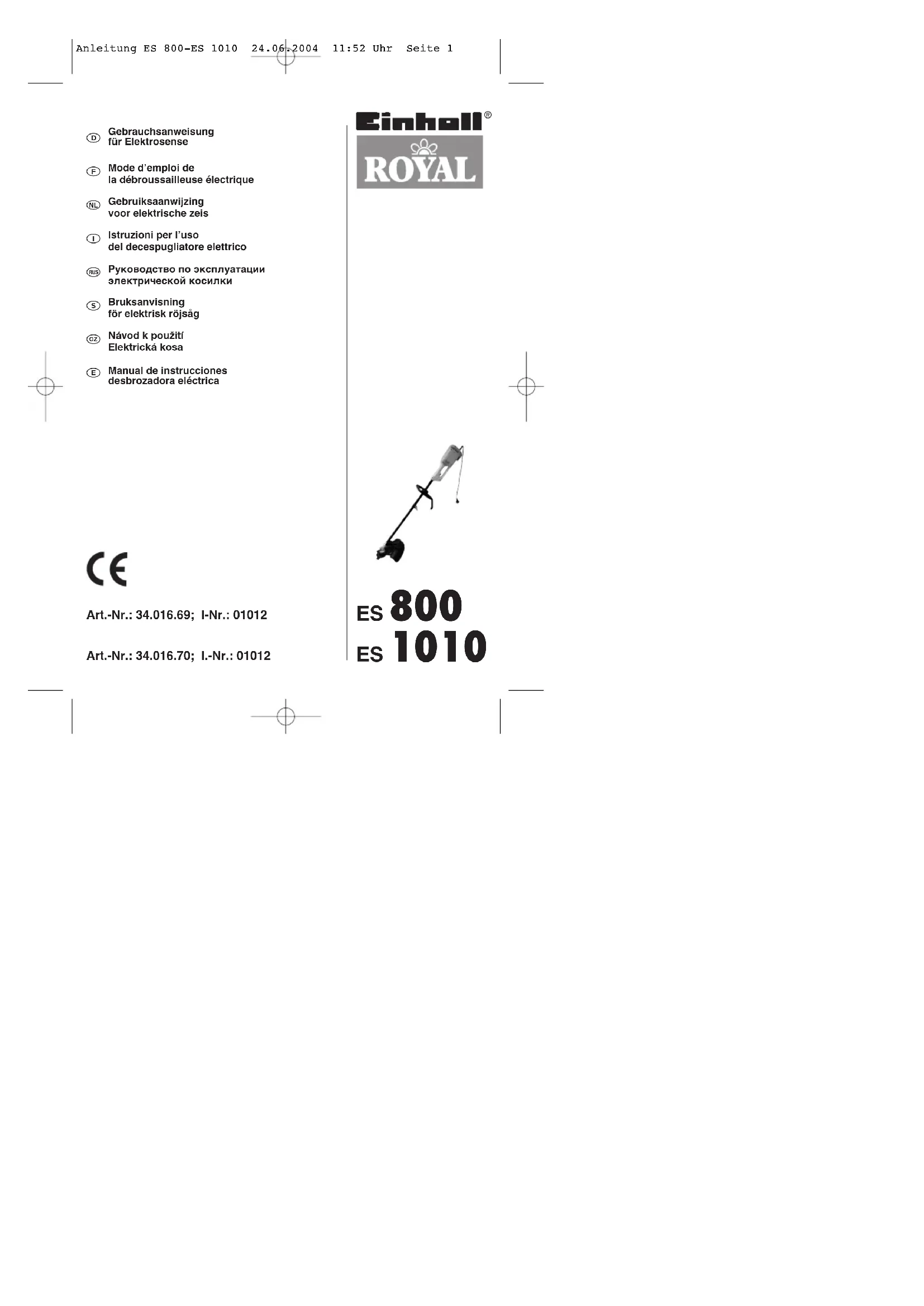 Royal ES 800 - Non catégorisé EINHELL - Notice d'utilisation et mode d'emploi gratuit