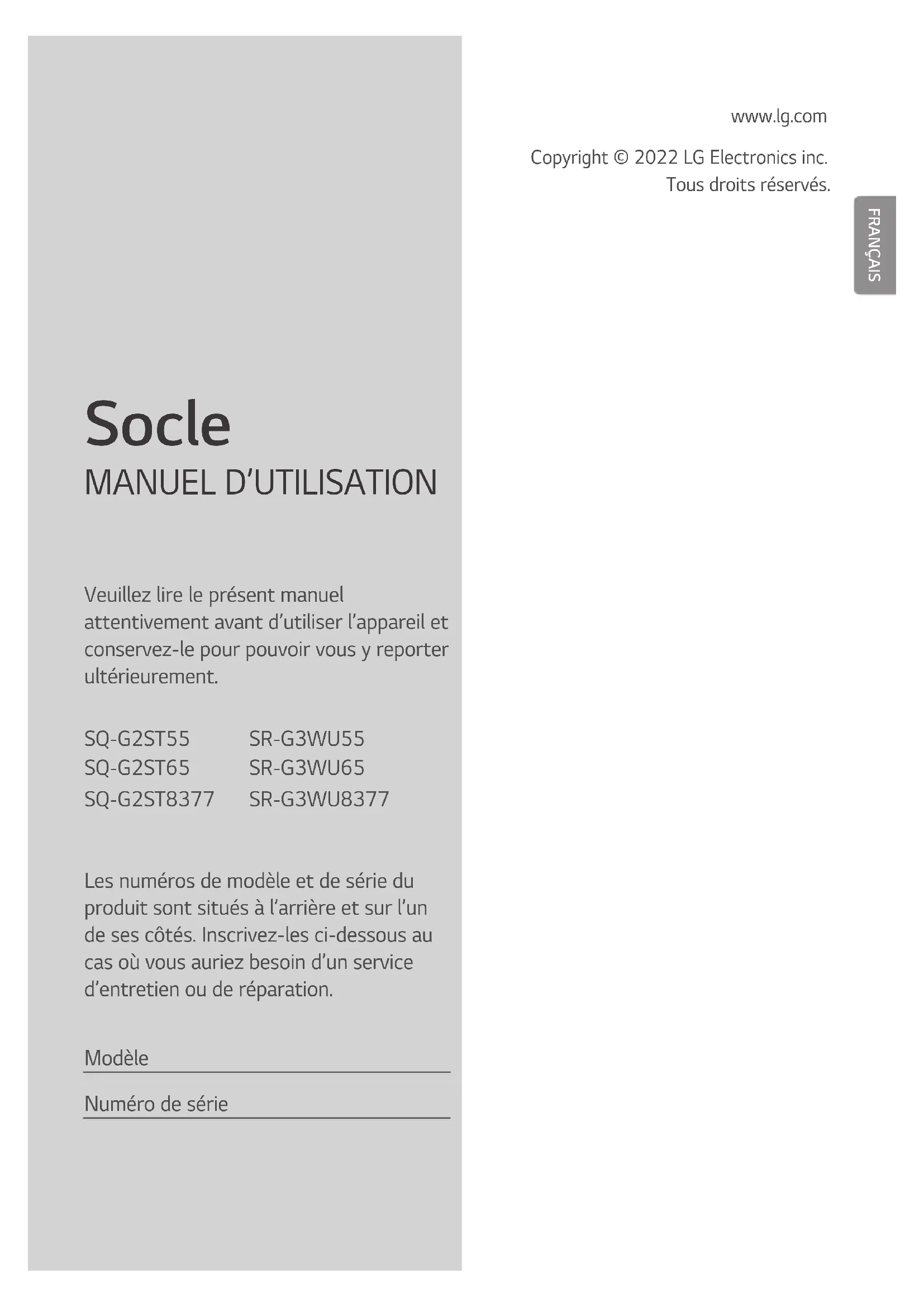 FRANÇAIS Socle www.lg.com Copyright © 2022 LG Electronics inc. Tous droits réservés.