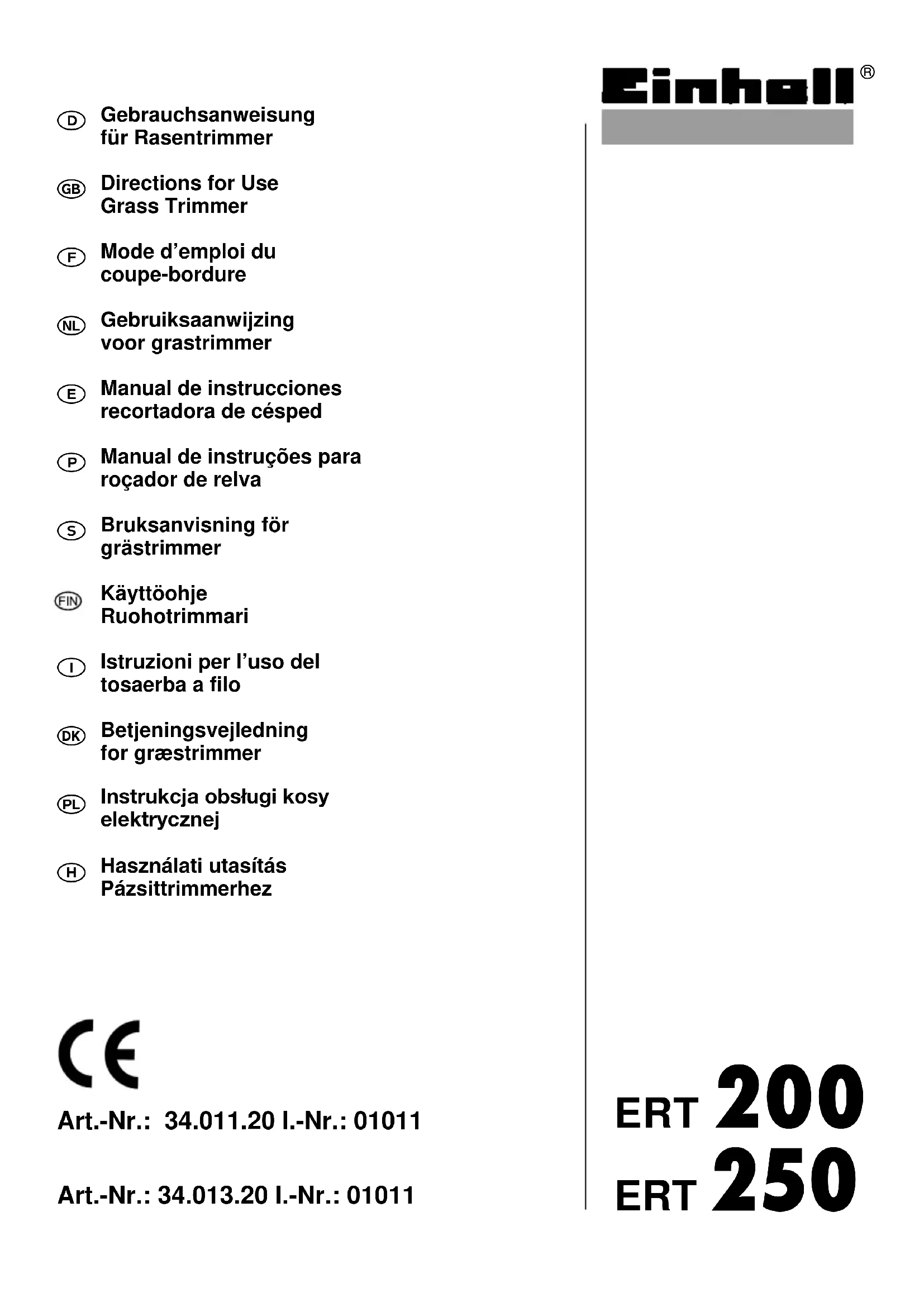 ERT 200 - Coupe-herbe EINHELL - Notice d'utilisation et mode d'emploi gratuit