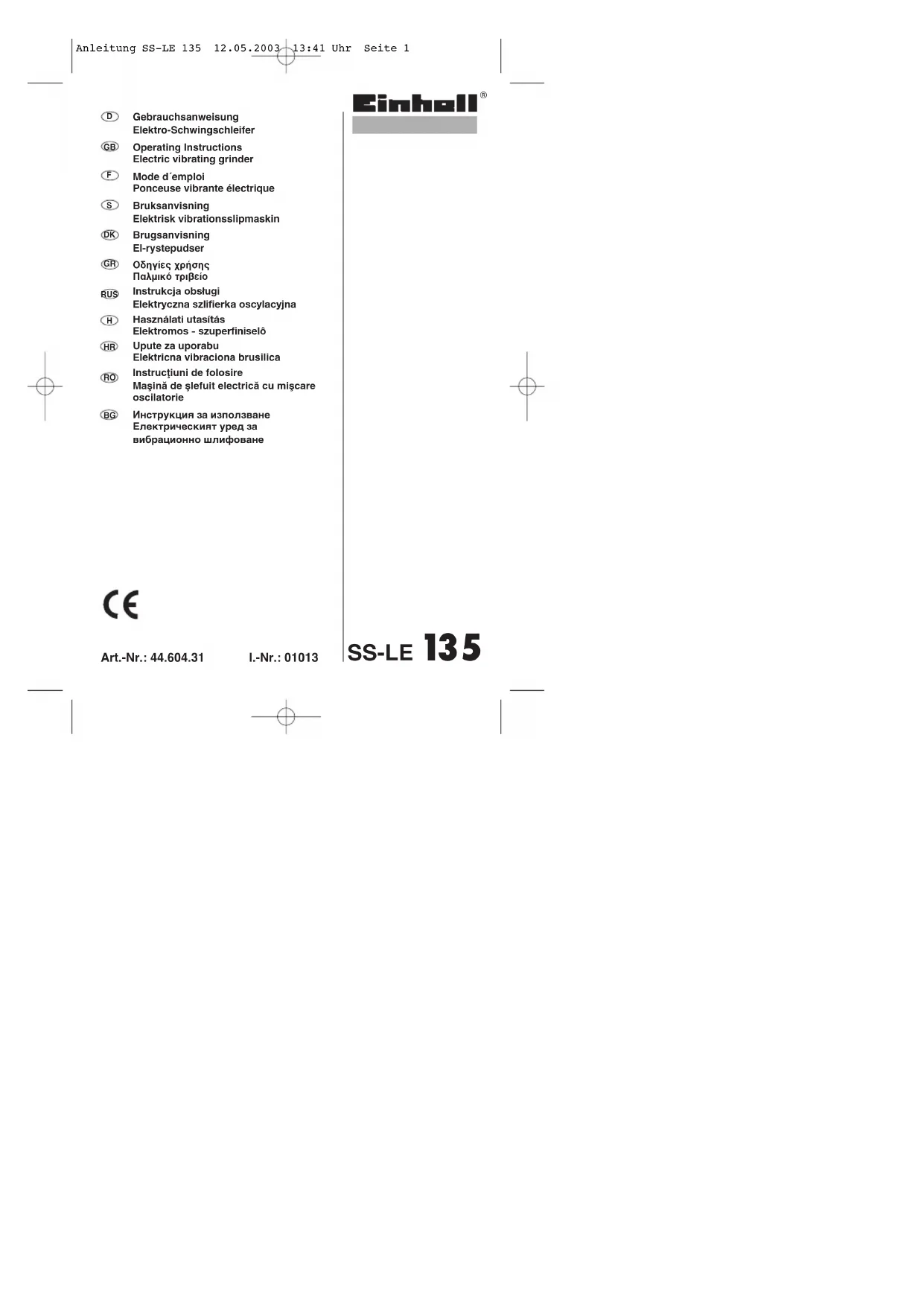 Retrouvez gratuitement la notice de l'appareil SS-LE 135 EINHELL au format PDF.