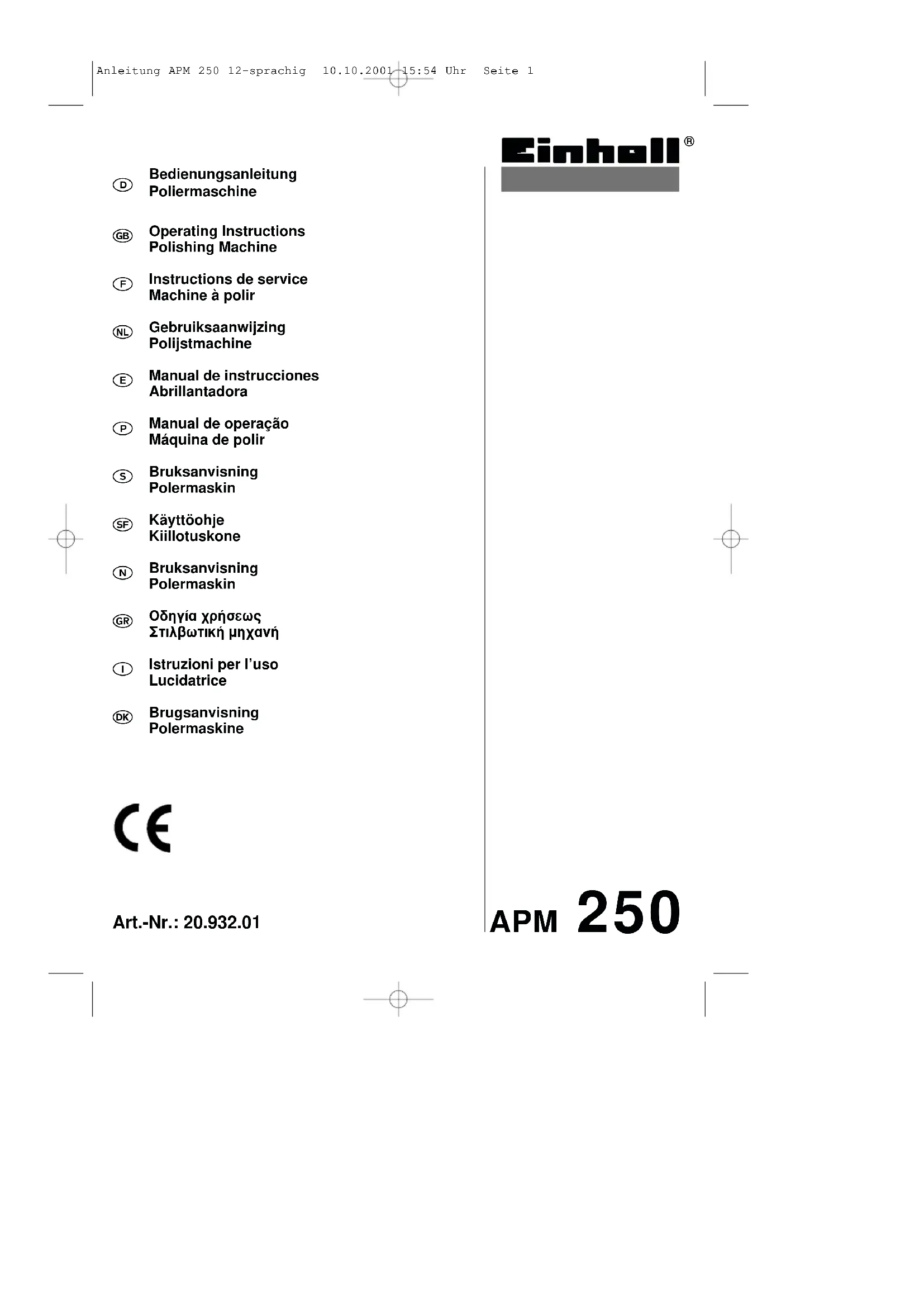 Retrouvez gratuitement la notice de l'appareil APM 250 EINHELL au format PDF.
