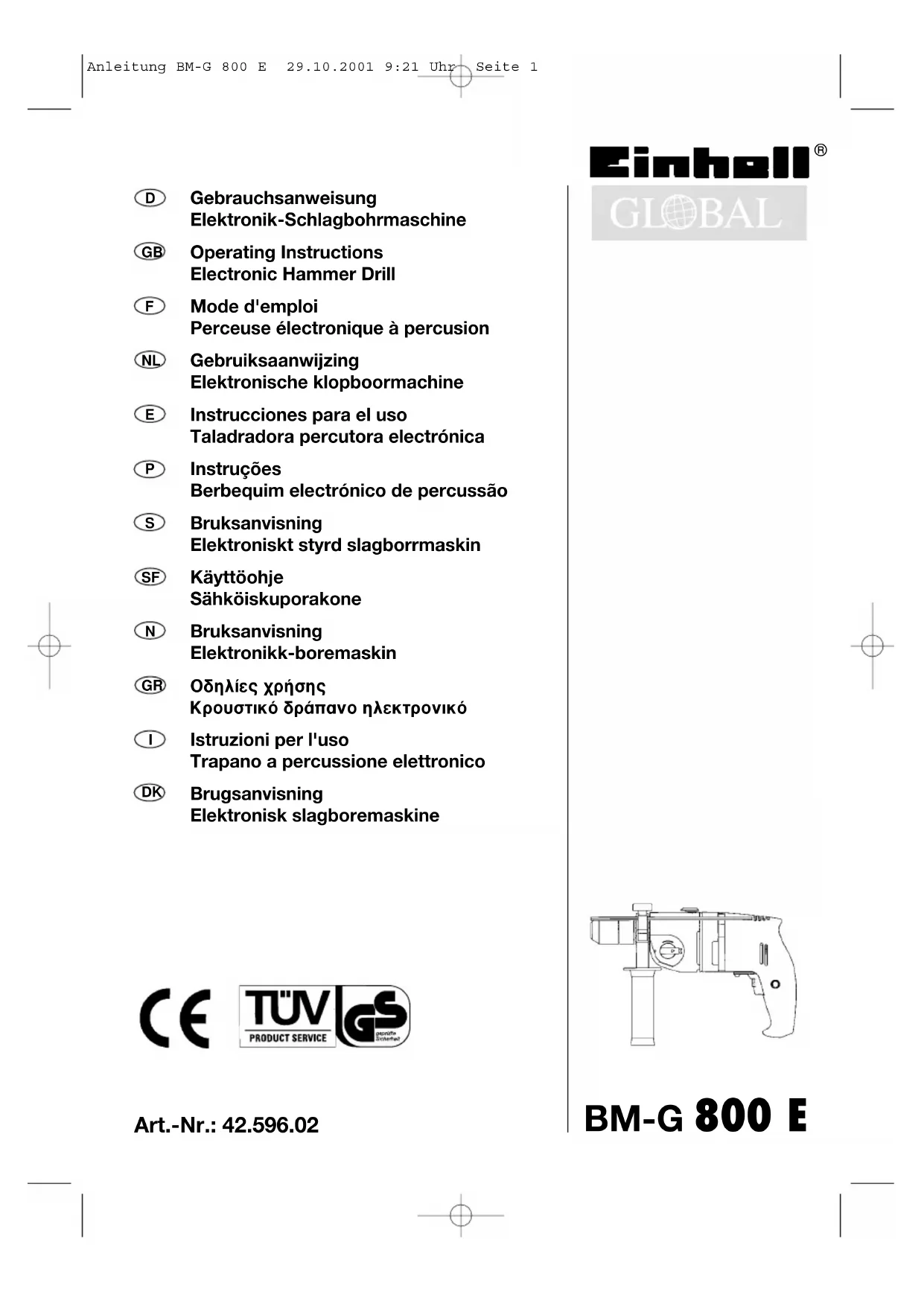 BM-G 800 E - Perceuse EINHELL - Notice d'utilisation et mode d'emploi gratuit