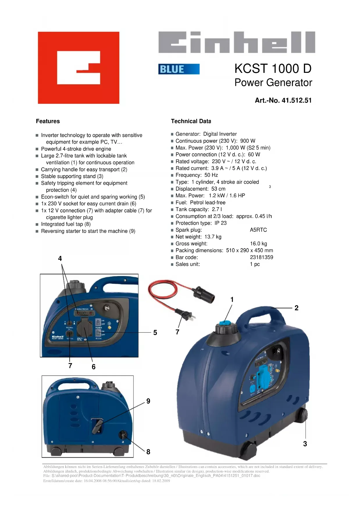 KCST 1000 D - Groupe électrogène EINHELL - Notice d'utilisation et mode d'emploi gratuit