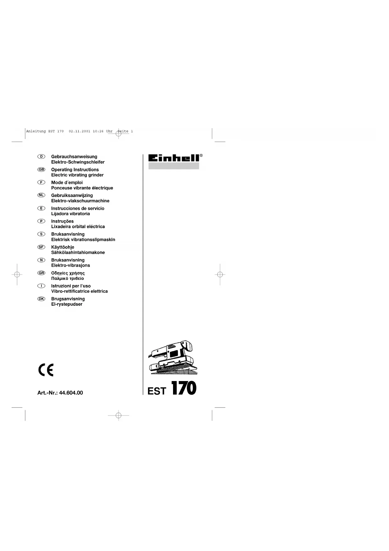 Téléchargez la notice de votre Ponceuse au format PDF gratuitement ! Retrouvez votre notice EST 170 - EINHELL et reprennez votre appareil électronique en main. Sur cette page sont publiés tous les documents nécessaires à l'utilisation de votre appareil EST 170 de la marque EINHELL.