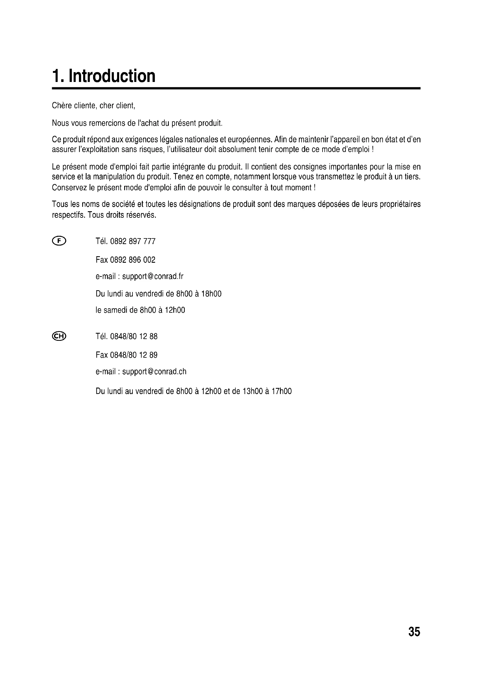 Tél. 0848/80 12 88 Fax 0848/80 12 89 e-mail : support@conrad.ch Du lundi au vendredi de 8h00 à 12h00 et de 13h00 à 17h0036