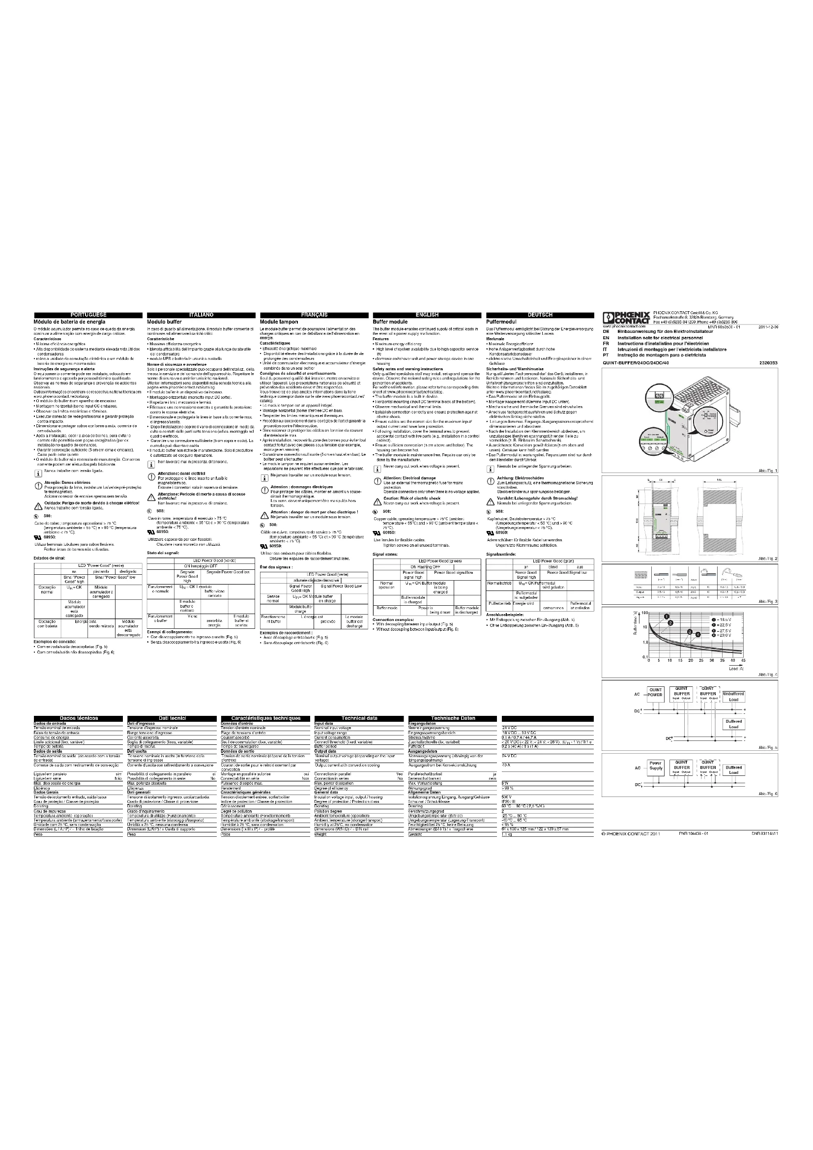 = OK Il modulo buffer viene caricatoIl modulo buffer è caricatoFunzionamento buffer! Viene assorbita energiaIl modulo buffer si scarica Module tampon Le module buffer permet de poursuivre l'alimentation des charges critiques en cas de défaillance de l'alimentation en énergie.Caractéristiques• Efficacité énergétique maximale