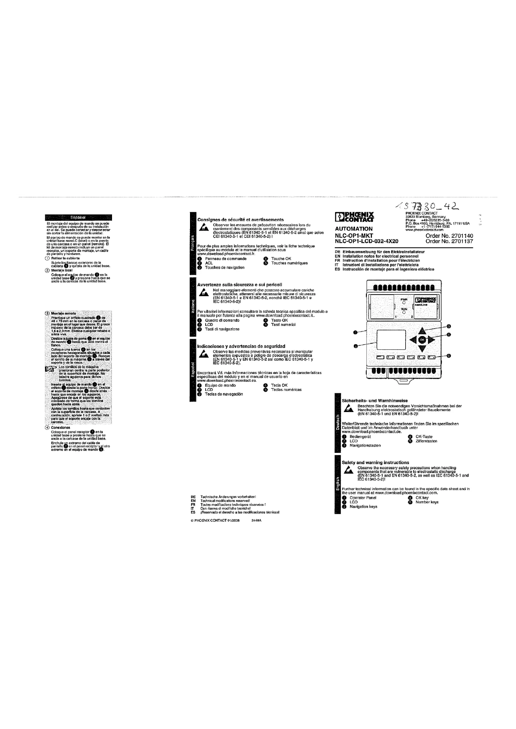 Retrouvez gratuitement la notice de l'appareil NLC-OP1-LCD-032-4X20 Phoenix Contact au format PDF.