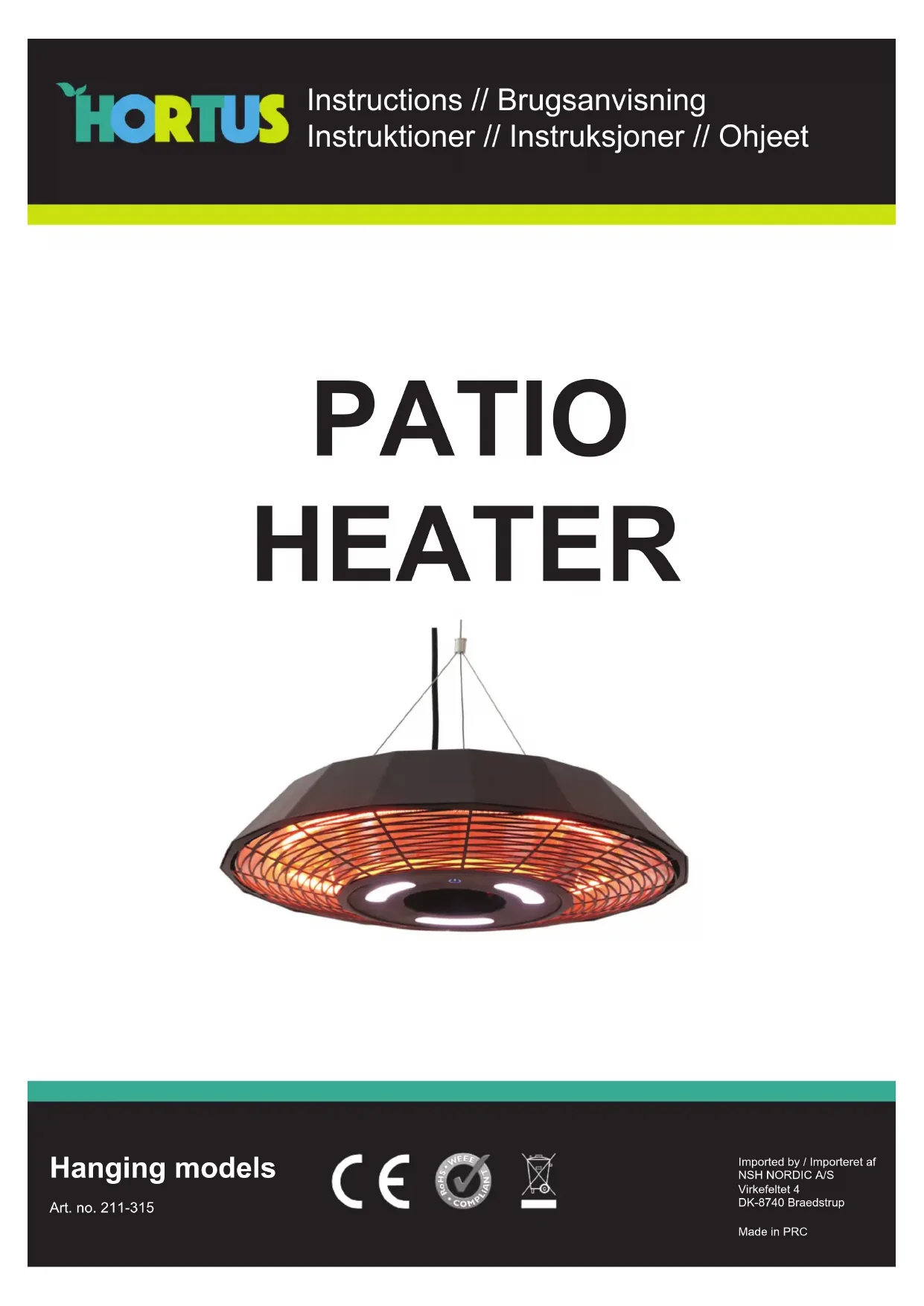 Téléchargez la notice de votre Chauffage au format PDF gratuitement ! Retrouvez votre notice 211-315 - Hortus et reprennez votre appareil électronique en main. Sur cette page sont publiés tous les documents nécessaires à l'utilisation de votre appareil 211-315 de la marque Hortus.