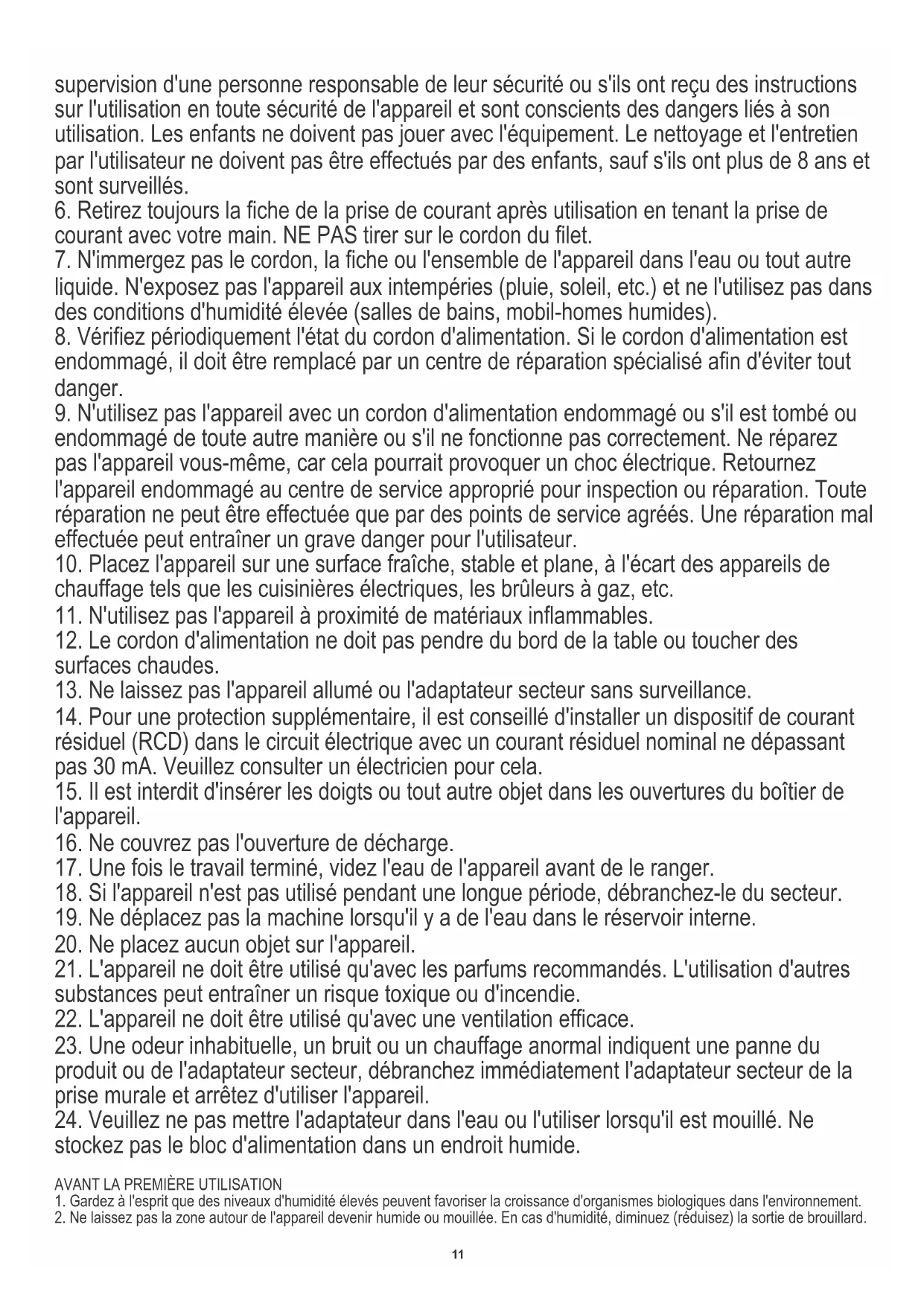 21. L'appareil ne doit être utilisé qu'avec les parfums recommandés. L'utilisation d'autres