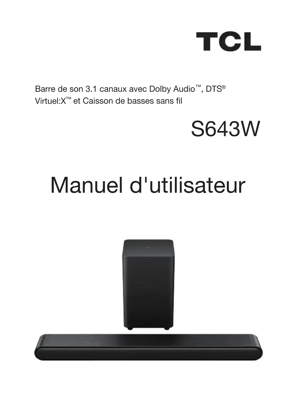 S643W - Barre de son TCL - Notice d'utilisation et mode d'emploi gratuit