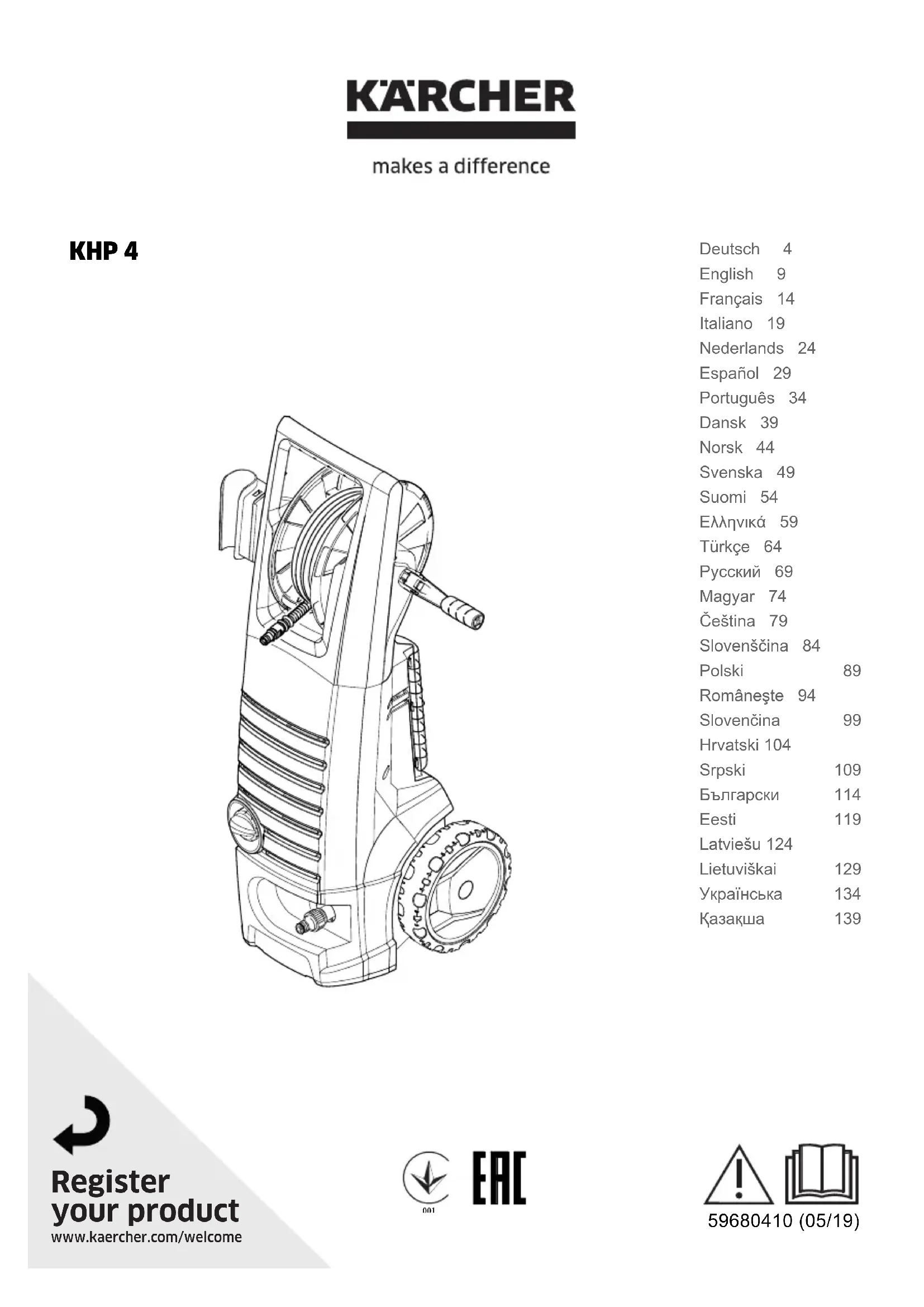 Retrouvez gratuitement la notice de l'appareil KHP 4 Kärcher au format PDF.