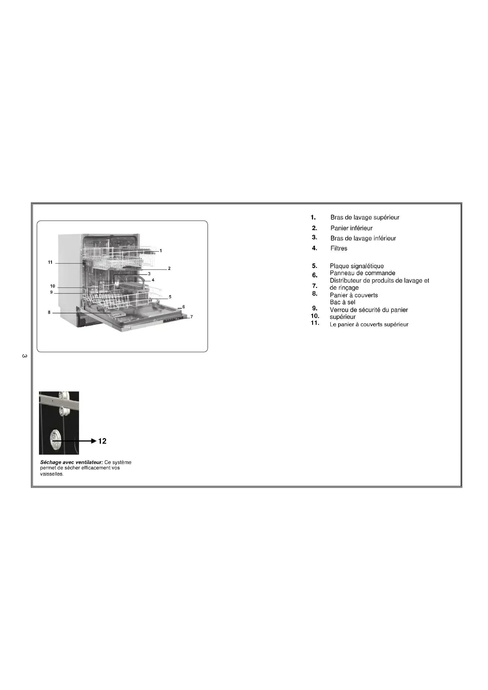 Bac à sel Le panier à couverts supérieur Séchage avec ventilateur: Ce système permet de sécher efficacement vos vaisselles. 6