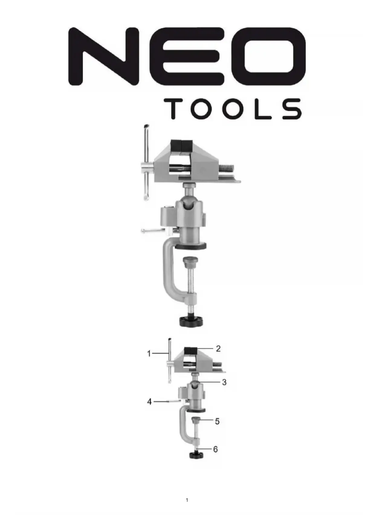 Position de l’étau La rotule vous permet de faire pivoter les mâchoires de l’étau dans n’importe quelle direction. Pour ce faire, desserrez la vis de verrouillage du joint, puis réglez les mâchoires à la position requise. Serrez le boulon de verrouillage du pivot. Serrage Les mâchoires sont élargies en tournant le levier dans le sens inverse des aiguilles d’une montre. Lorsque l’ouverture correcte est réalisée, la pièce peut être placée entre les mâchoires. Les mâchoires sont serrées en tournant le levier dans le sens des aiguilles d’une montre. Appuyez sur la pièce avec une force modérée pour assurer la stabilité. Trop de pression peut endommager l’élément saisi. Remplacement des mâchoires Pour remplacer les mâchoires, dévissez-les de l’étau et changez-les en fixant les nouvelles mâchoires avec des vis.