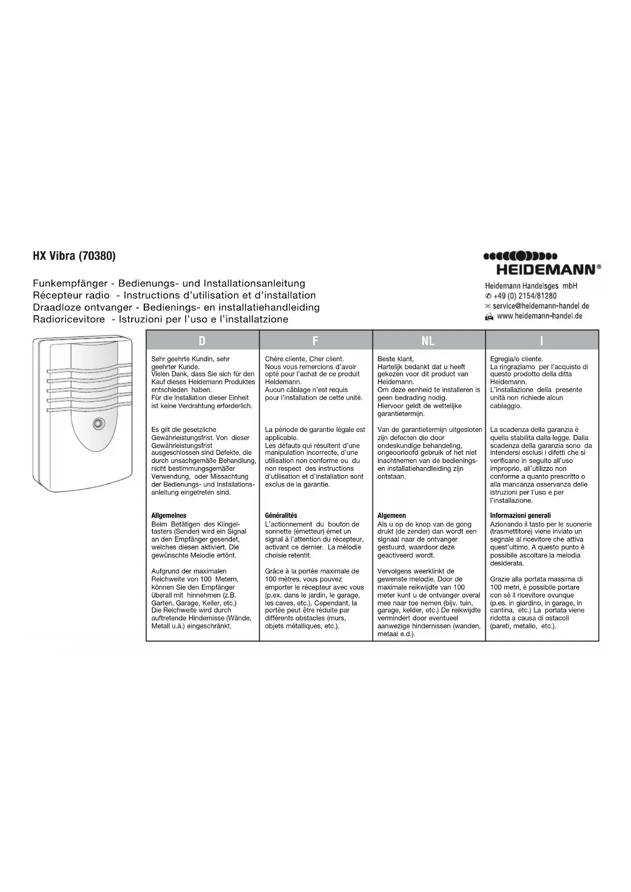 MODE D'EMPLOI HX Vibra 70380 Heidemann