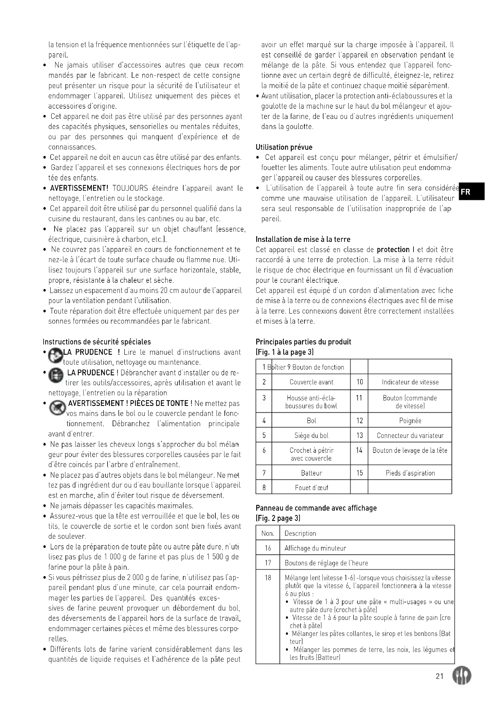 - Cet appareil est conçu pour mélanger, pétrir et émulsifier/ fouetter les aliments. Toute autre utilisation peut endomma