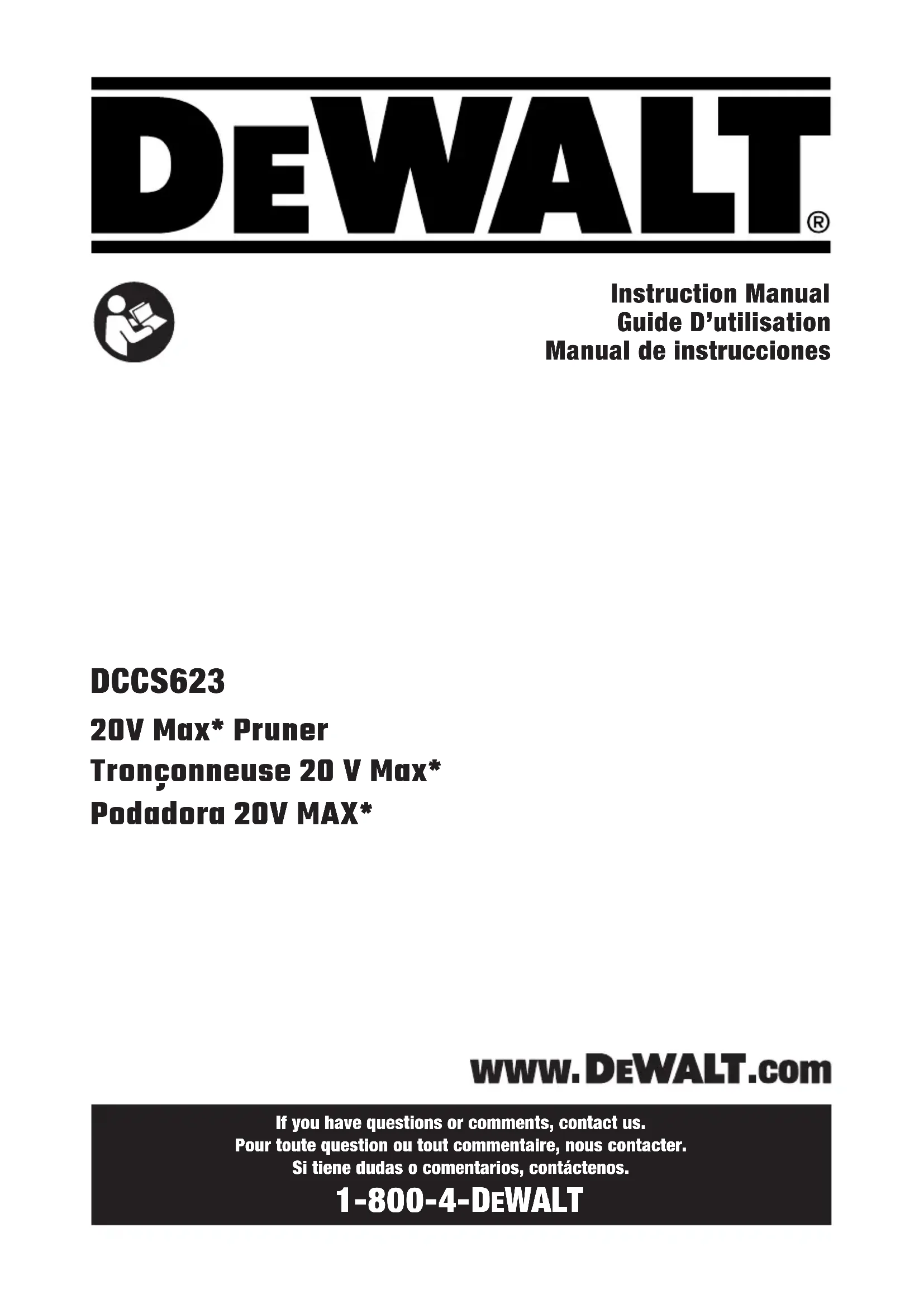 Retrouvez gratuitement la notice de l'appareil DCCS623 DEWALT au format PDF.