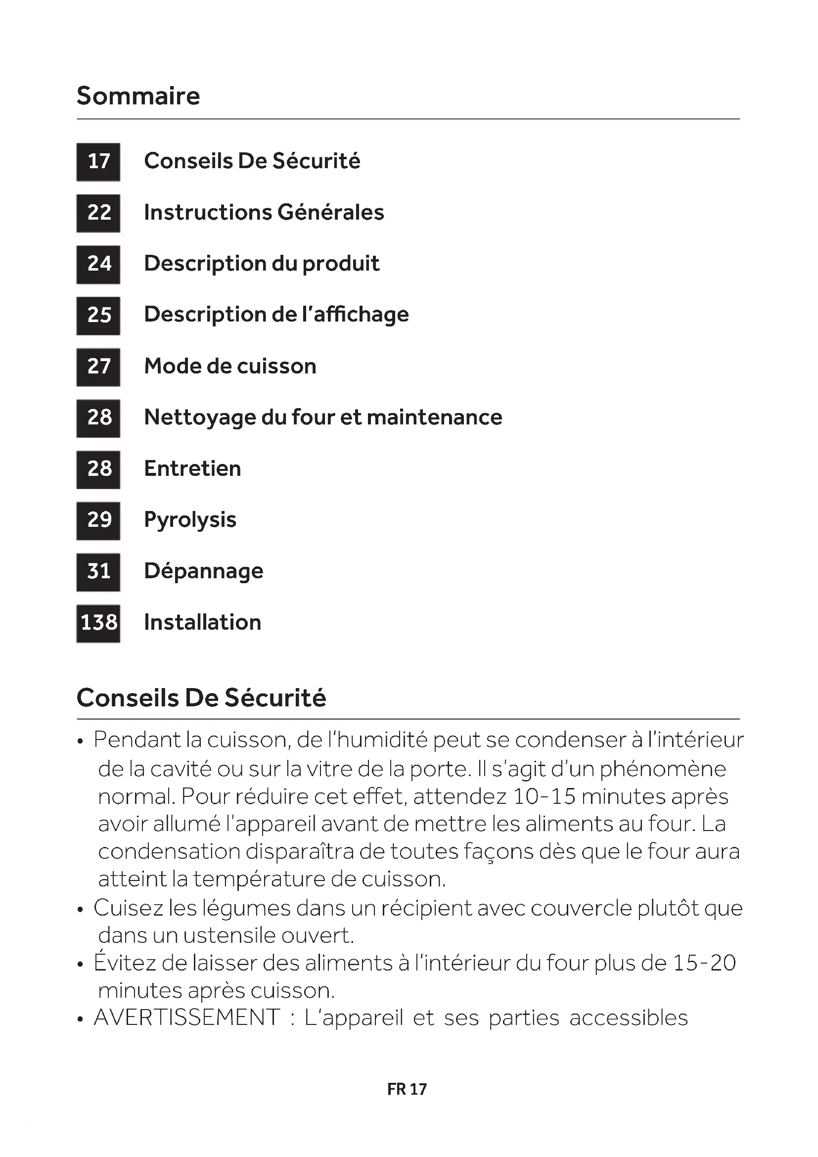 - AVERTISSEMENT : L’appareil et ses parties accessibles Conseils De SécuritéFR 18 chauent pendant l’utilisation. Faites attention à ne pas touch- er les parties chaudes.