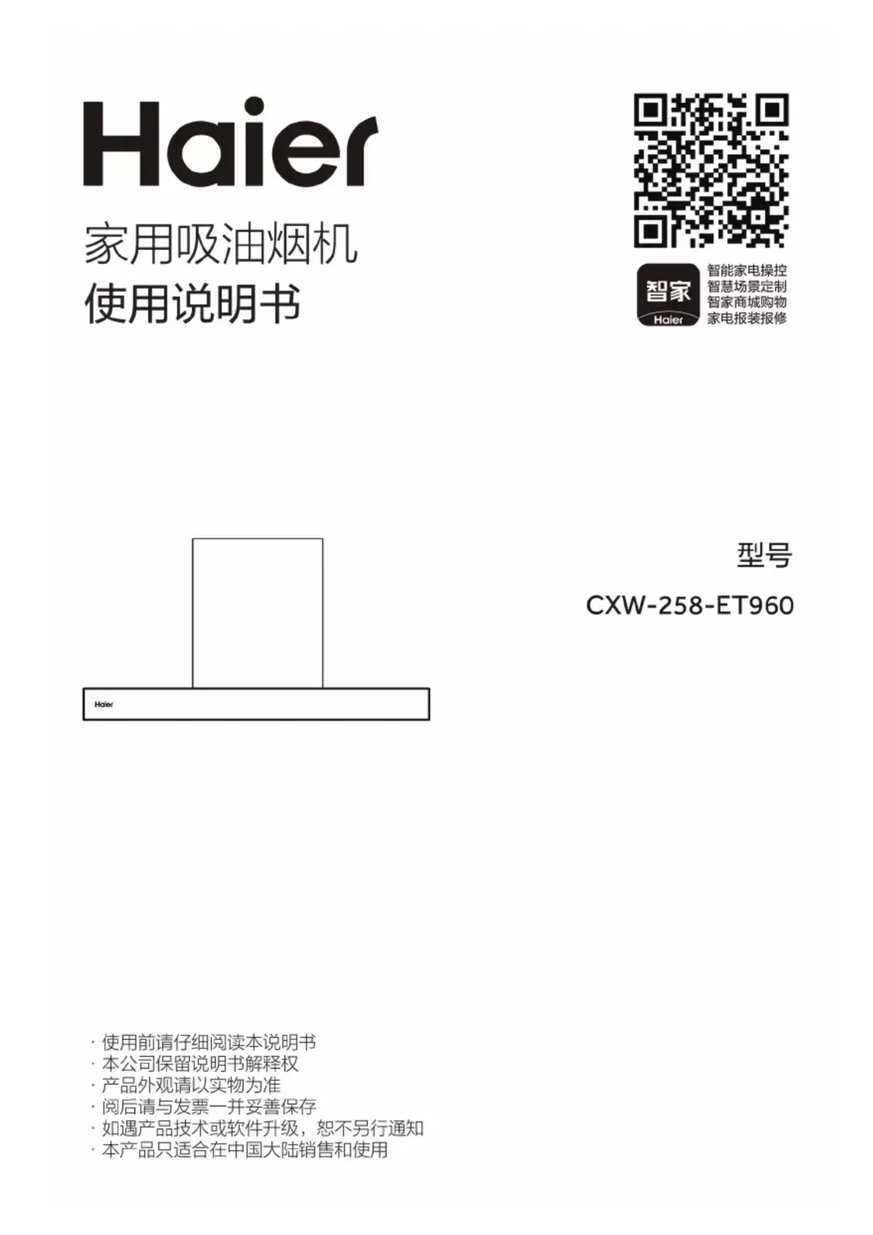 CXW-258-ET960 - Hotte HAIER - Notice d'utilisation et mode d'emploi gratuit