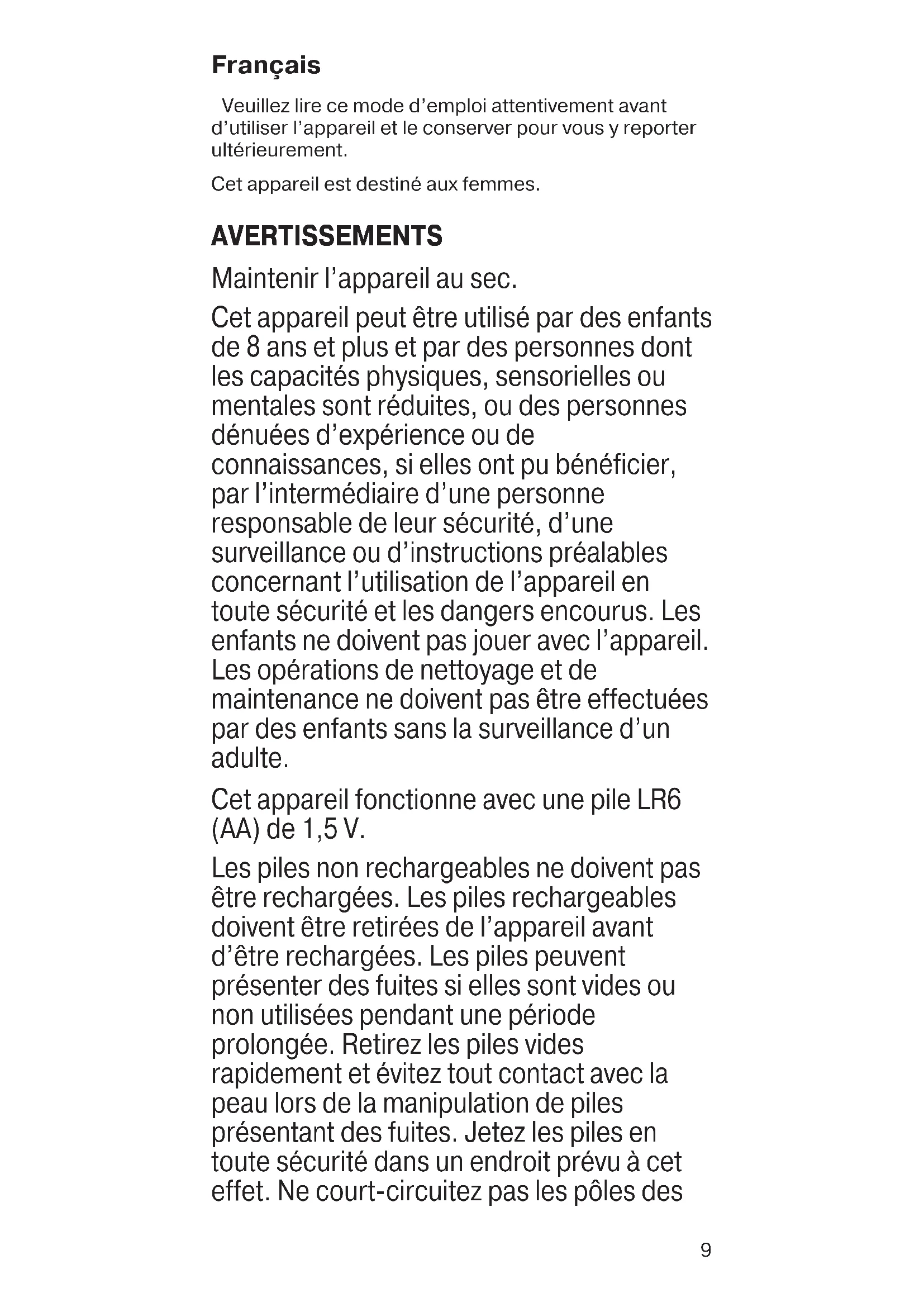 | Utilisation | Utilisation sur peau sèche pour une épilation précise |