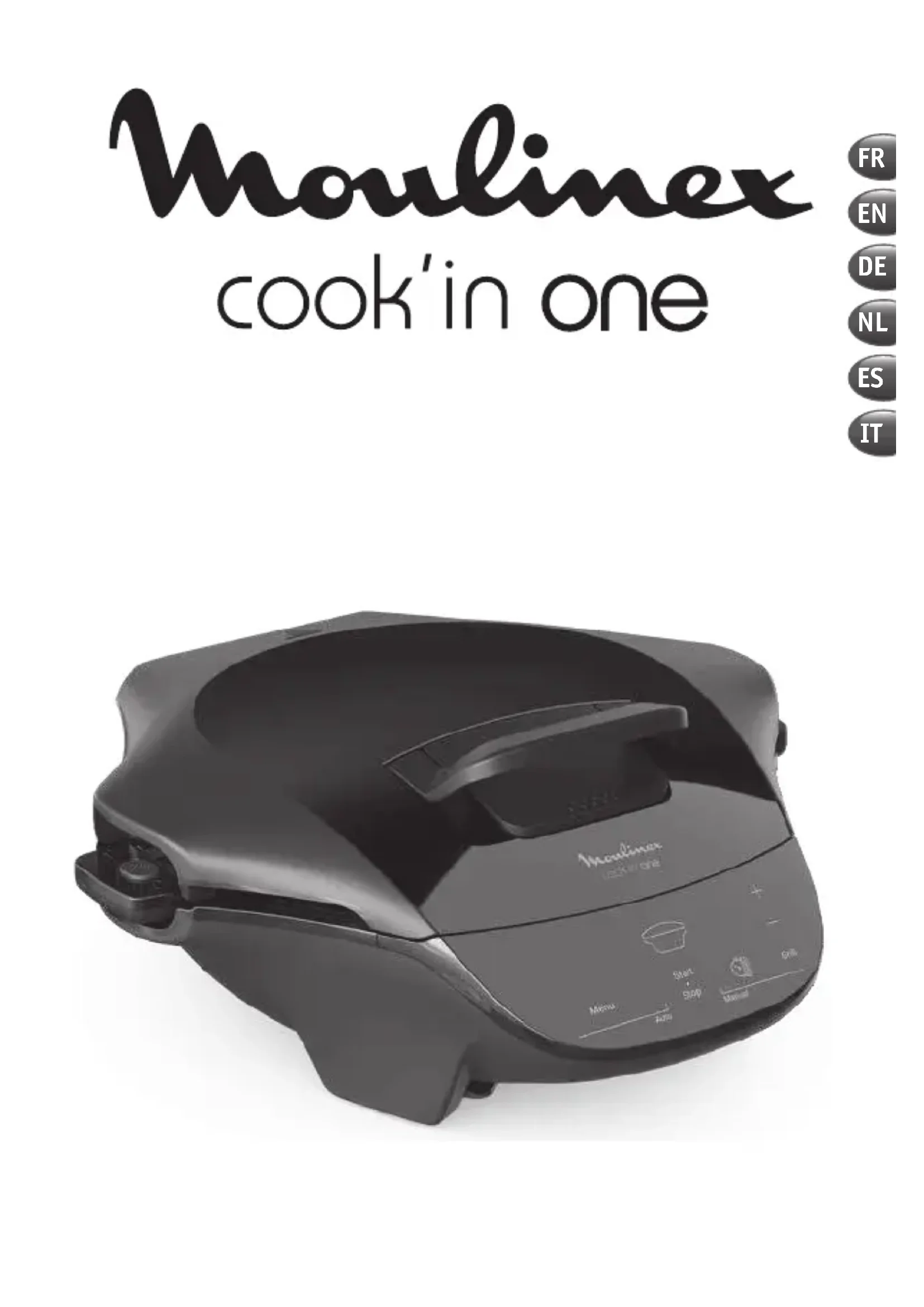 Vérifier que la cuve est bien installé. Débrancher l’appareil et attendre quelques minutes. Rebrancher ensuite votre appareil et mettre en marche. Si le problème persiste, contacter votre service clientèle ou un centre de réparation. Le temps affiché clignote Si le temps affiché est correct, appuyer sur touche START/ STOP pour valider. Le thermostat affichée clignote Si le thermostat affiché est correct, appuyer sur touche START/STOP pour valider. Le programme allumé clignote Si le programme affiché est correct, appuyer sur touche START/ STOP pour valider. Le temps est arrivé à 00 mais la cuisson n’est pas suffisante En fin de cuisson, après avoir éteint le bip sonore en appuyant une fois sur touche START/STOP, ajouter du temps à l’aide des touches – et + puis valider par touche START/ STOP. Après avoir lancé un programme de cuisson, il n’est pas possible de modifier le temps de cuisson Attendre la fin de la préchauffe après le lancement du programme pour modifier le temps à l’aide de – et +. Dysfonctionnement des touches Débrancher l’appareil et attendre quelques minutes. Rebrancher ensuite votre appareil et mettre en marche. Si le problème persiste, contacter votre service clientèle ou un centre de réparation. Le résultat de cuisson n'est pas comforme aux attentes. Respecter les recettes Moulinex disponibles sur l'application. Ecoulement de liquide sur le plan de travail et/ ou sur le contour du Cook'in One. La cuisson de liquide doit toujours etre réalisée en mode ouvert afin d'éviter un important dégagement de vapeur à l'ouverture ainsi qu'un éventuel écoulement de liquide sur le plan de travail. Le produit n'est pas stable en position ouverte à 180°. Vérifier si la poignée est en position support, ouverture 180° (cf page 4) et que celle-ci touche le plan de travail. Il y a un espace entre la plaque supérieure et la cuve quand le produit est fermé. Vérifier que la plaque supérieure et la cuve soient correctement intallées. Programmes Recettes Quantité Temps de cuisson Position recommandée Préchauffage Maintient au chaud