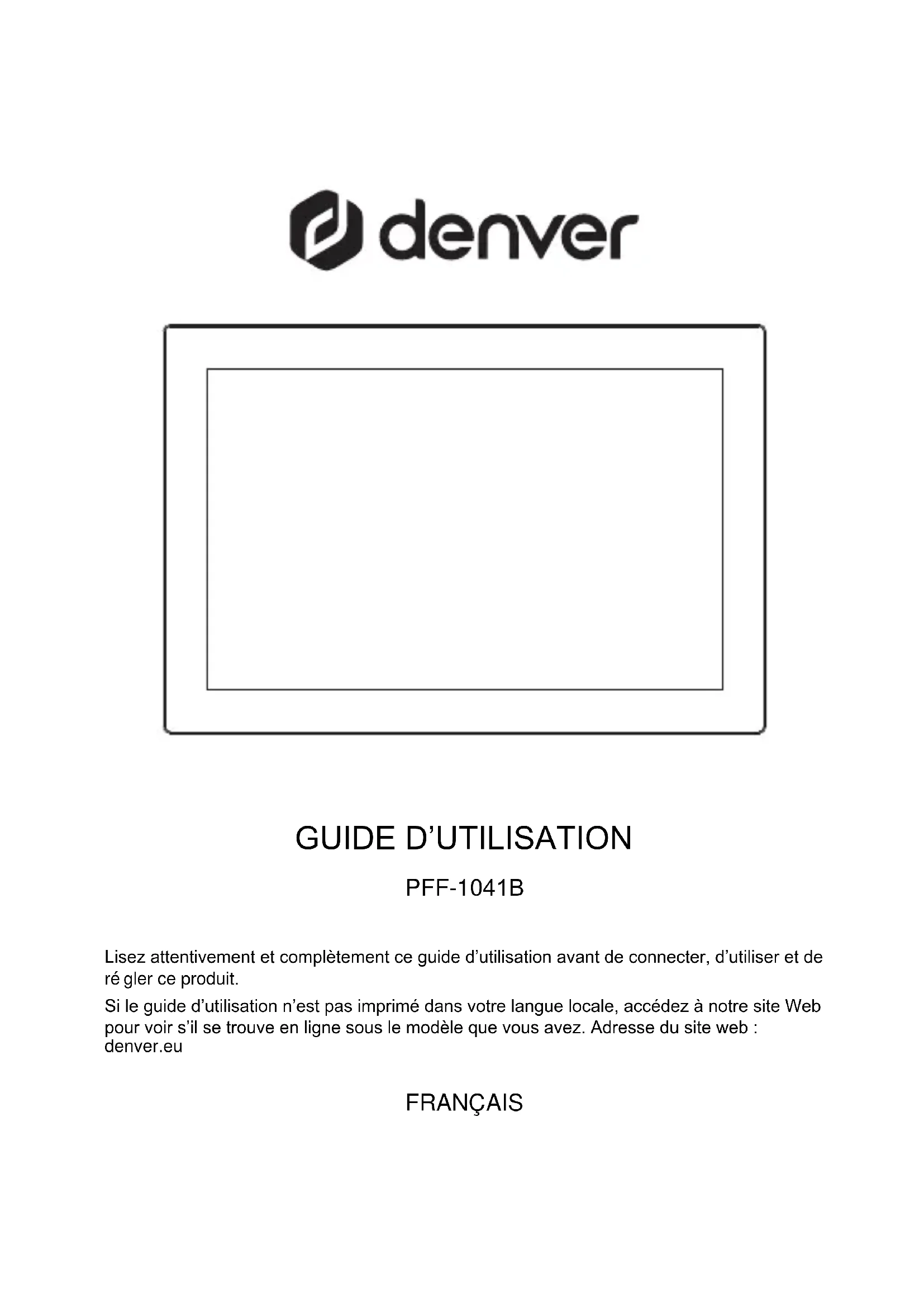 PFF-1041B Lisez attentivement et complètement ce guide d’utilisation avant de connecter, d’utiliser et de régler ce produit. Si le guide d’utilisation n’est pas imprimé dans votre langue locale, accédez à notre site Web pour voir s’il se trouve en ligne sous le modèle que vous avez. Adresse du site web : denver.eu FRANÇAISConsignes de sécurité importantes