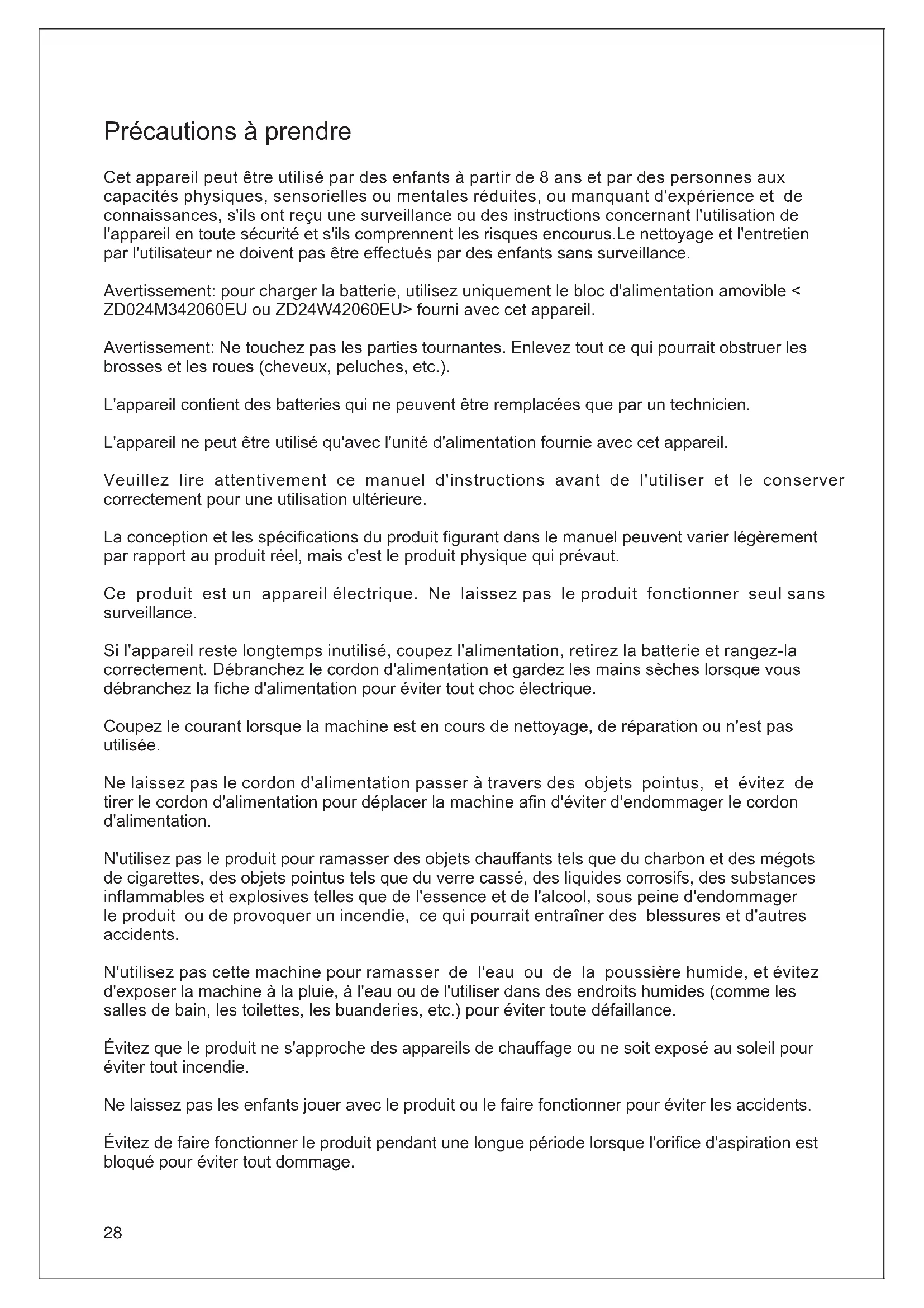 1. Lorsque vous utilisez ce produit pour la première fois, la batterie de l'aspirateur peut ne pas être