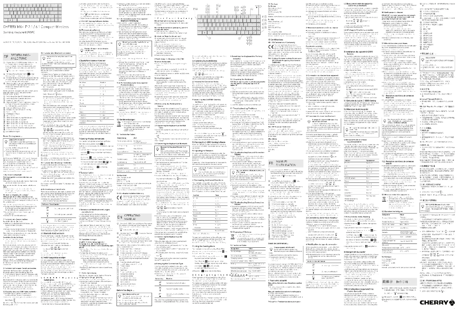 fil + Bluetooth 5.2 + USB filaire) pour les ordinateurs de bureau et les ordinateurs portables. Ils sont spécialement conçus pour le gaming. Pour plus d'informations sur d'autres produits, des téléchargements et bien plus encore, rendez-vous sur www.cherry-world.com ou www.cherry.de. 1 Pour votre sécurité Risque d'étouffement en cas d’ingestion de petites pièces