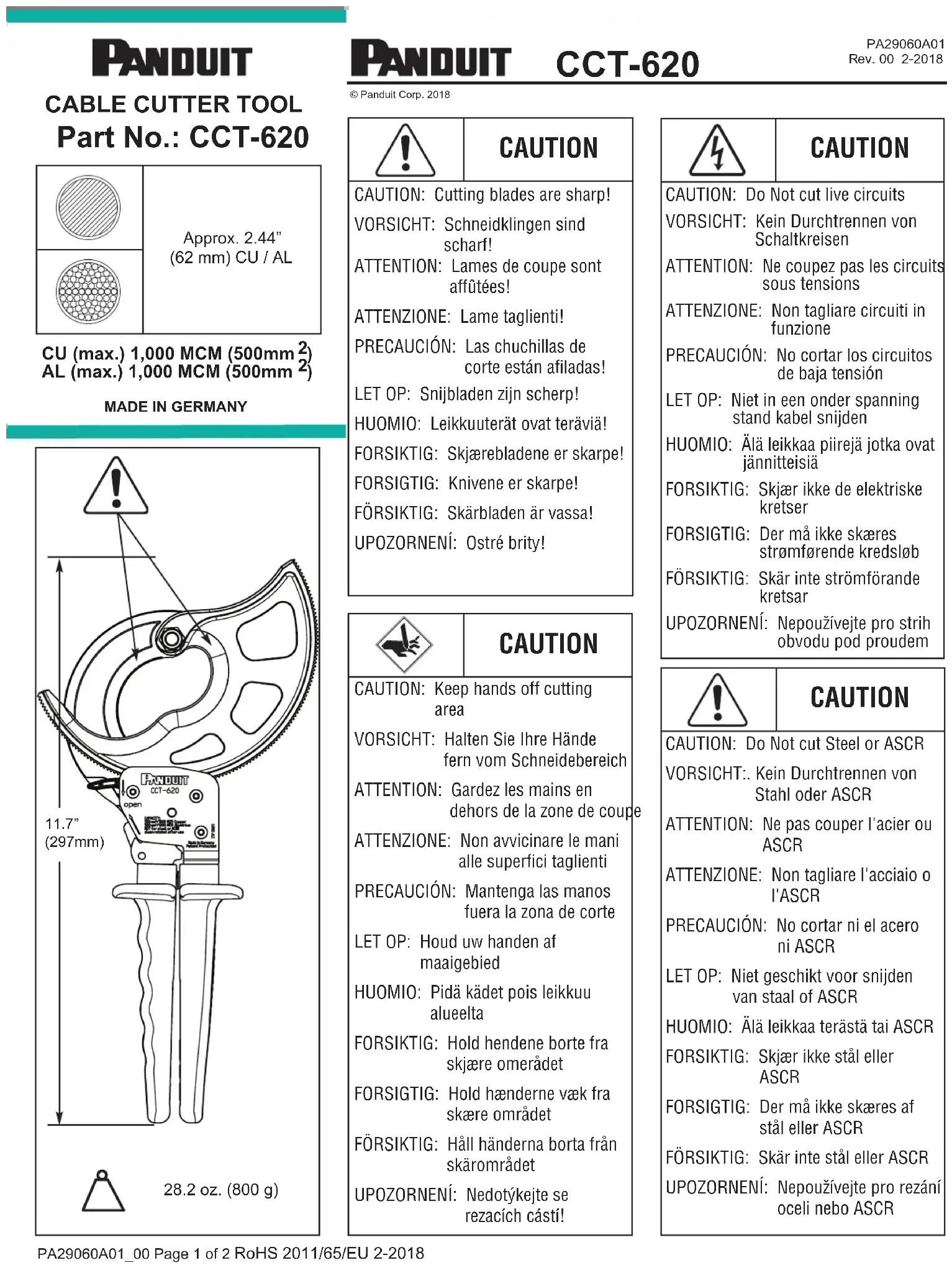 Retrouvez gratuitement la notice de l'appareil CCT-620 Panduit au format PDF.