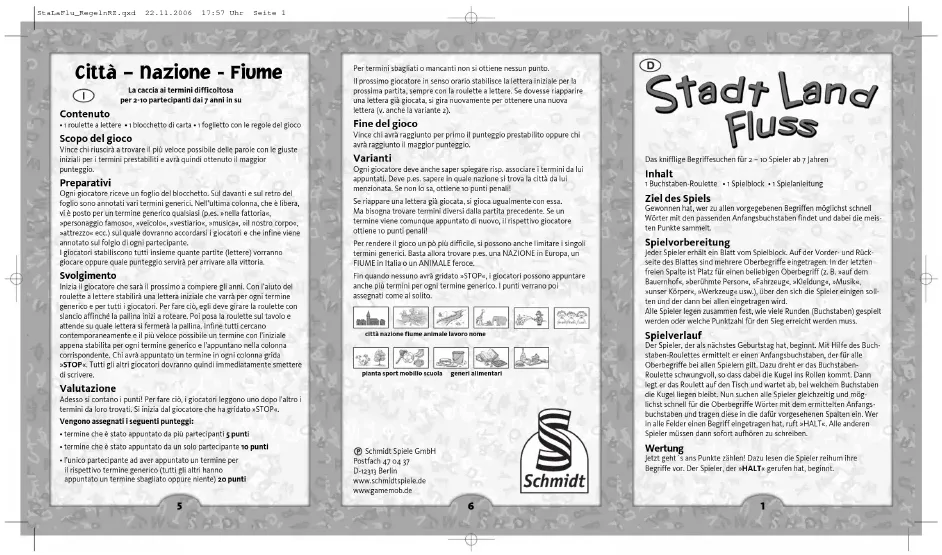 Téléchargez la notice de votre Jeu de société au format PDF gratuitement ! Retrouvez votre notice Stadt - Schmidt et reprennez votre appareil électronique en main. Sur cette page sont publiés tous les documents nécessaires à l'utilisation de votre appareil Stadt de la marque Schmidt.