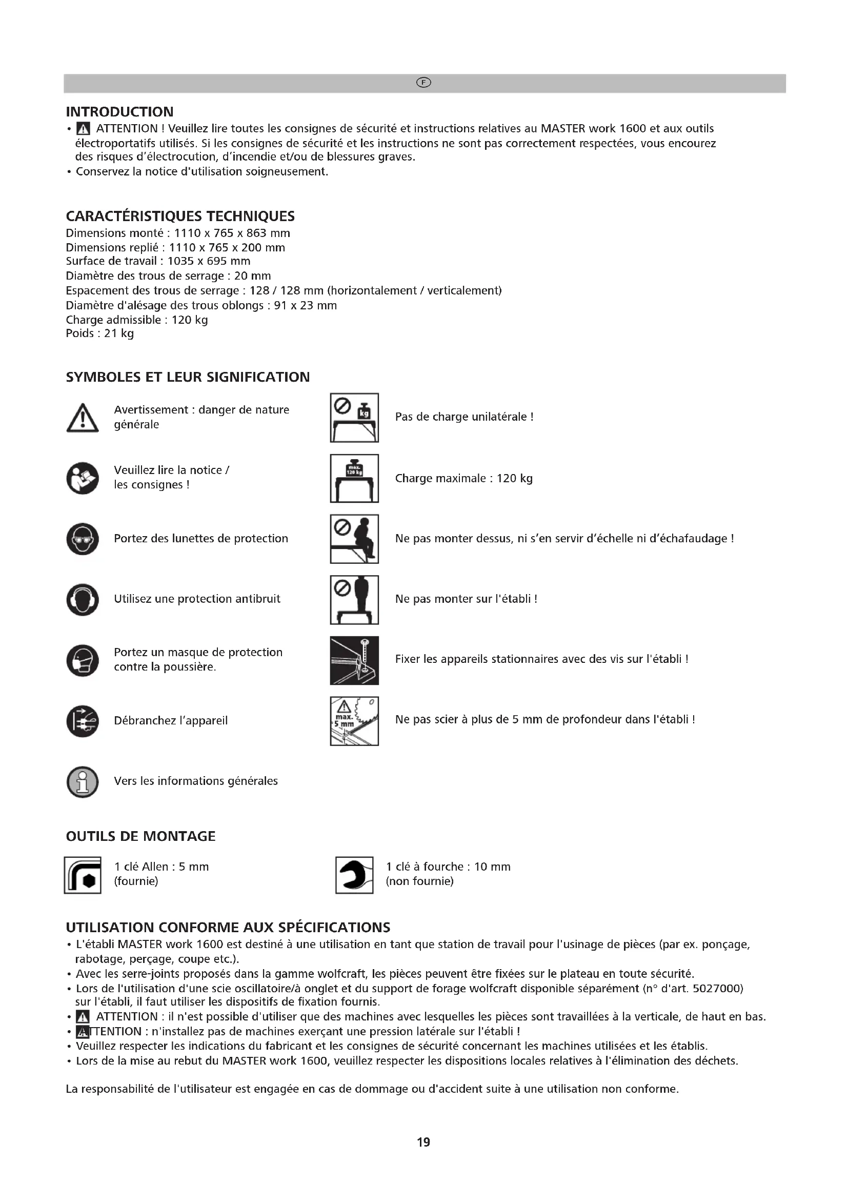 MASTER work 1600 - Table WOLFCRAFT - Notice d'utilisation et mode d'emploi gratuit