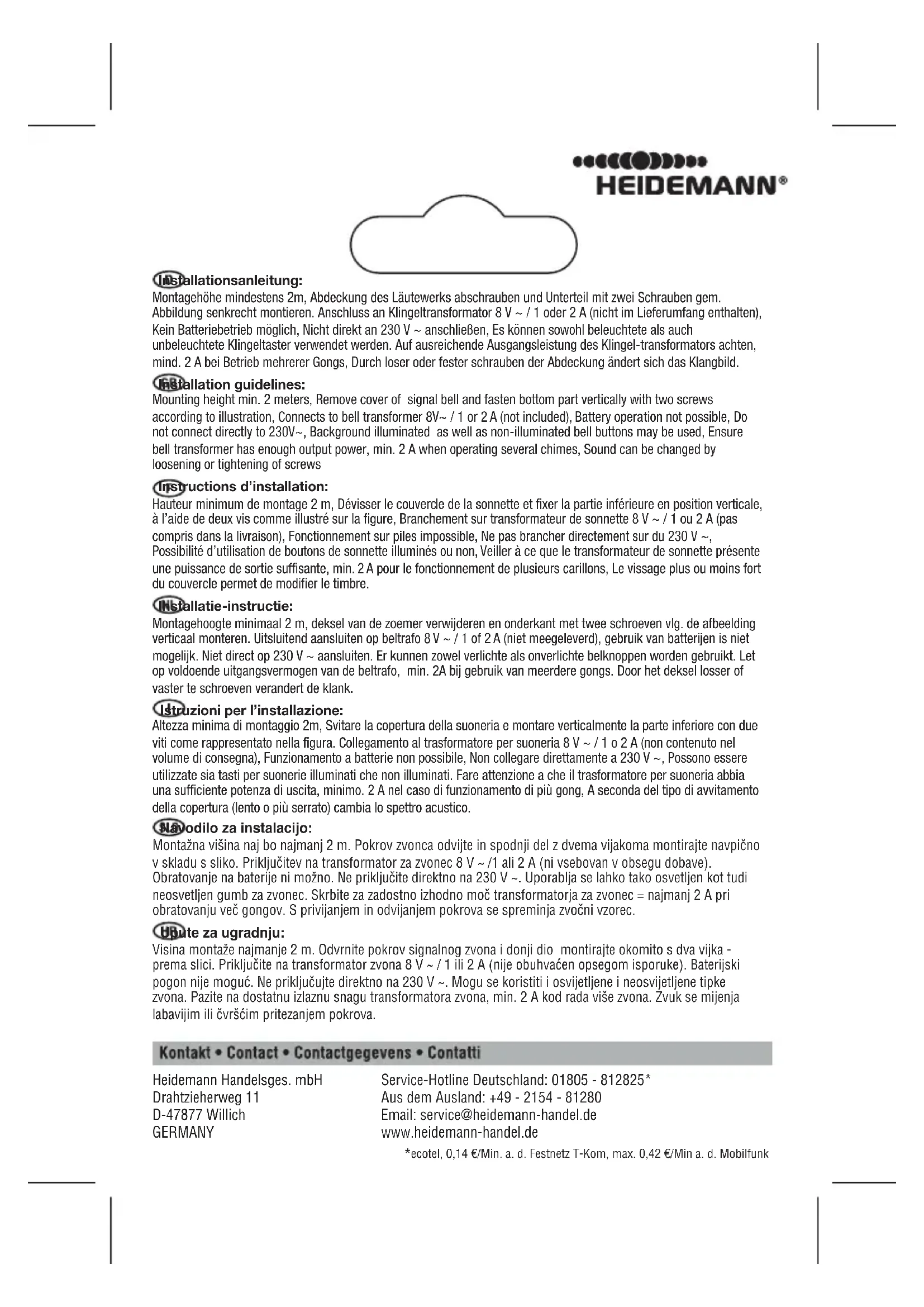 70036 - Sonnette de portes Heidemann - Notice d'utilisation et mode d'emploi gratuit