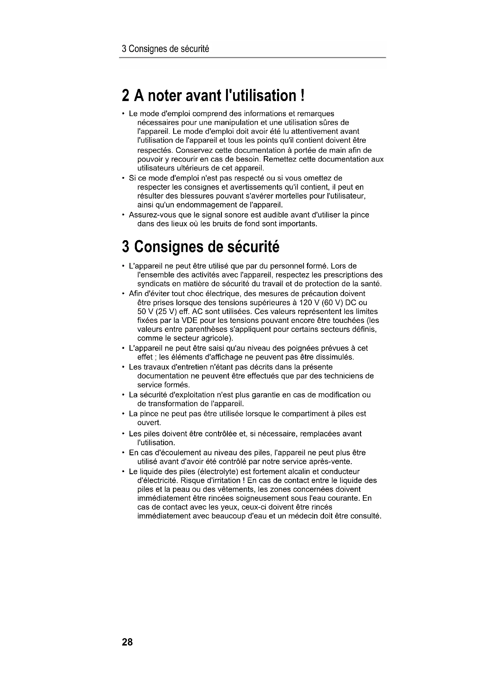 - Assurez-vous que le signal sonore est audible avant d'utiliser la pince dans des lieux où les bruits de fond sont importants. 3 Consignes de sécurité