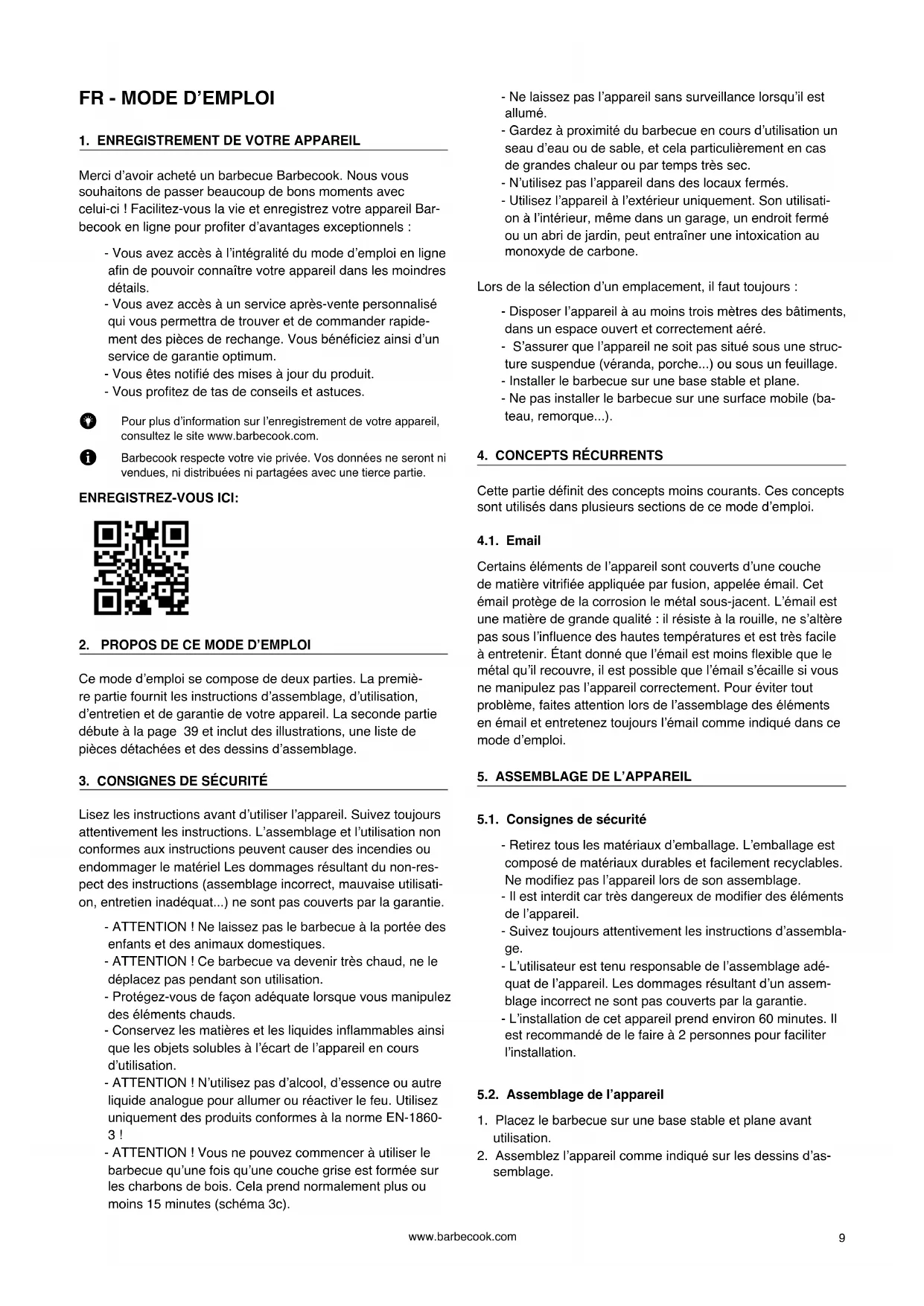 Pour plus d’information sur l’enregistrement de votre appareil, consultez le site www.barbecook.com.