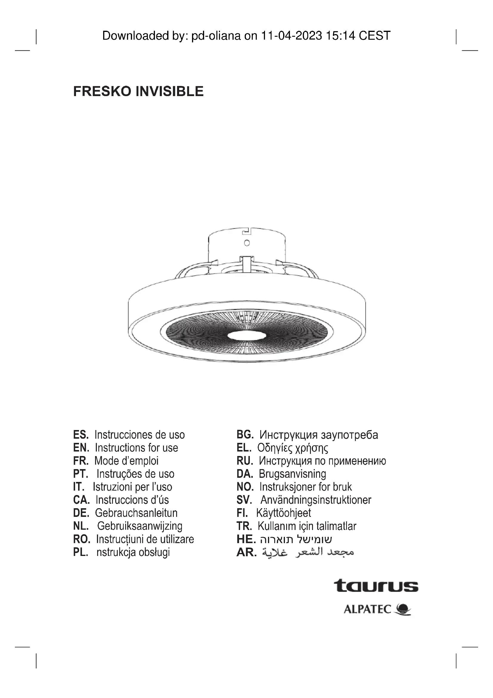 Fresko invisible - Ventilateur TAURUS - Notice d'utilisation et mode d'emploi gratuit