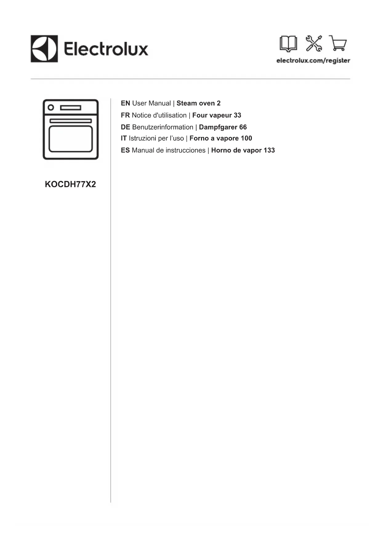 Retrouvez gratuitement la notice de l'appareil KOCDH77X2 ELECTROLUX au format PDF.