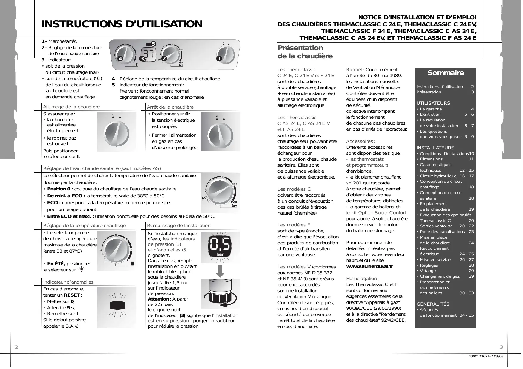 MODE D'EMPLOI THEMACLASSIC 24 SAUNIER DUVAL