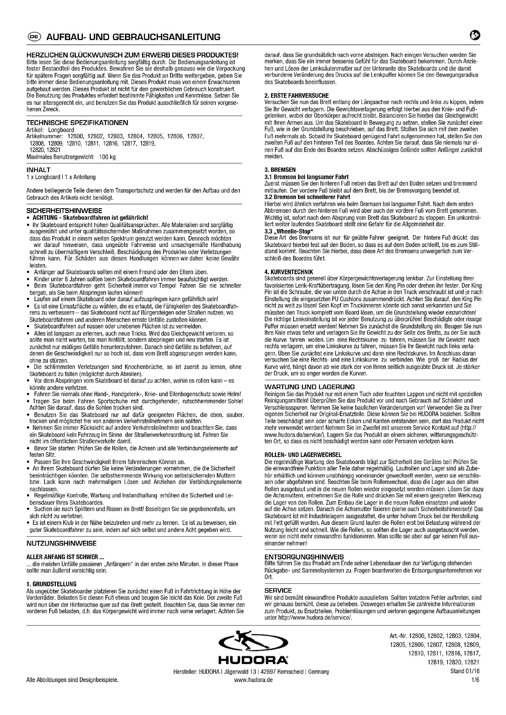 Retrouvez gratuitement la notice de l'appareil 12819 Hudora au format PDF.