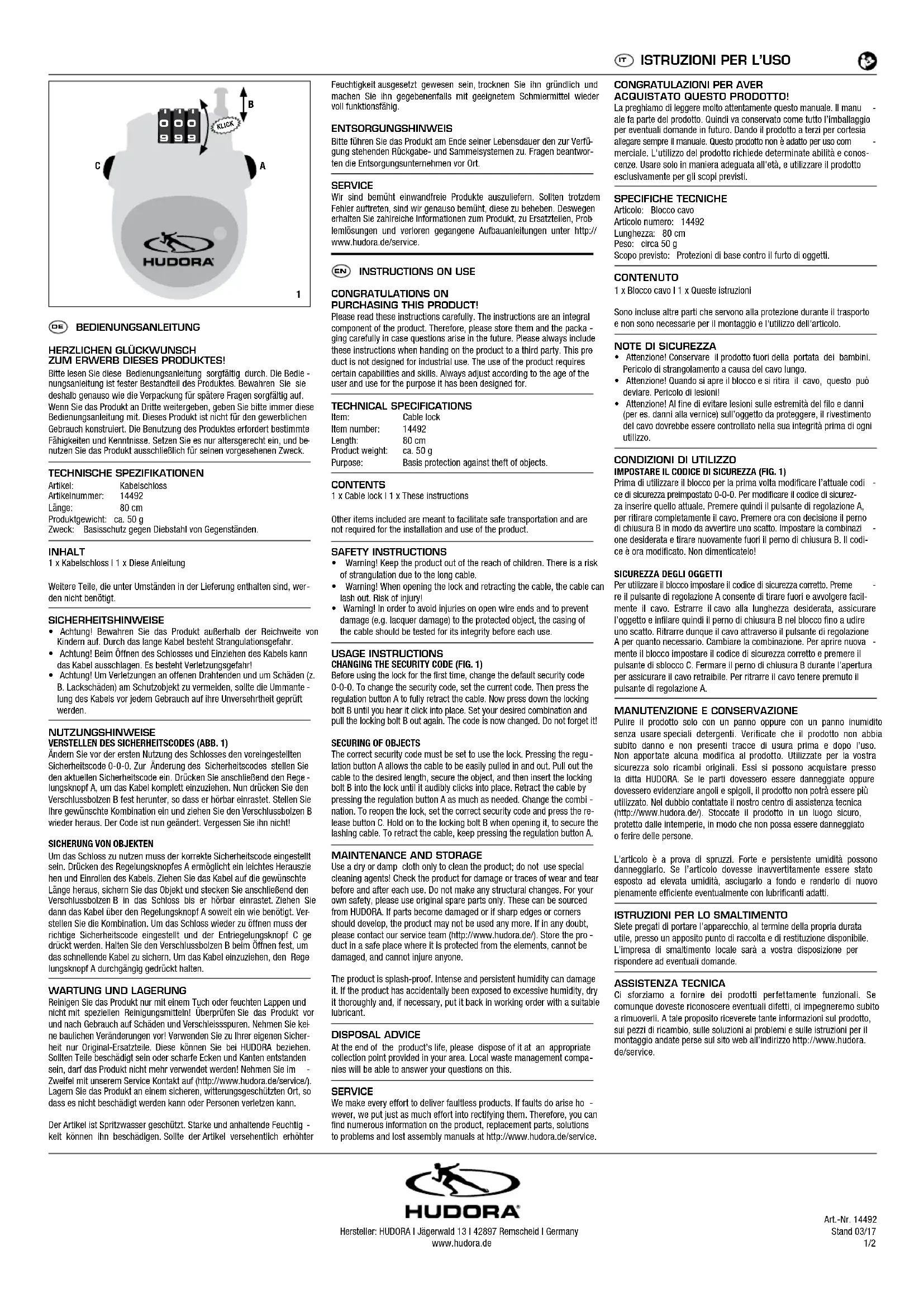 Retrouvez gratuitement la notice de l'appareil 14492 Hudora au format PDF.