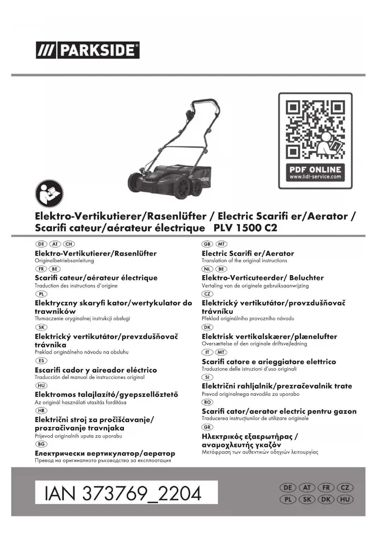PLV 1500 C2 - Tondeuse à gazon PARKSIDE - Notice d'utilisation et mode d'emploi gratuit