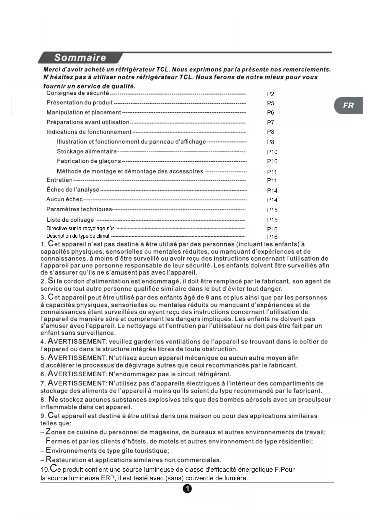 RP318BXE1 - Réfrigérateur TCL - Notice d'utilisation et mode d'emploi gratuit