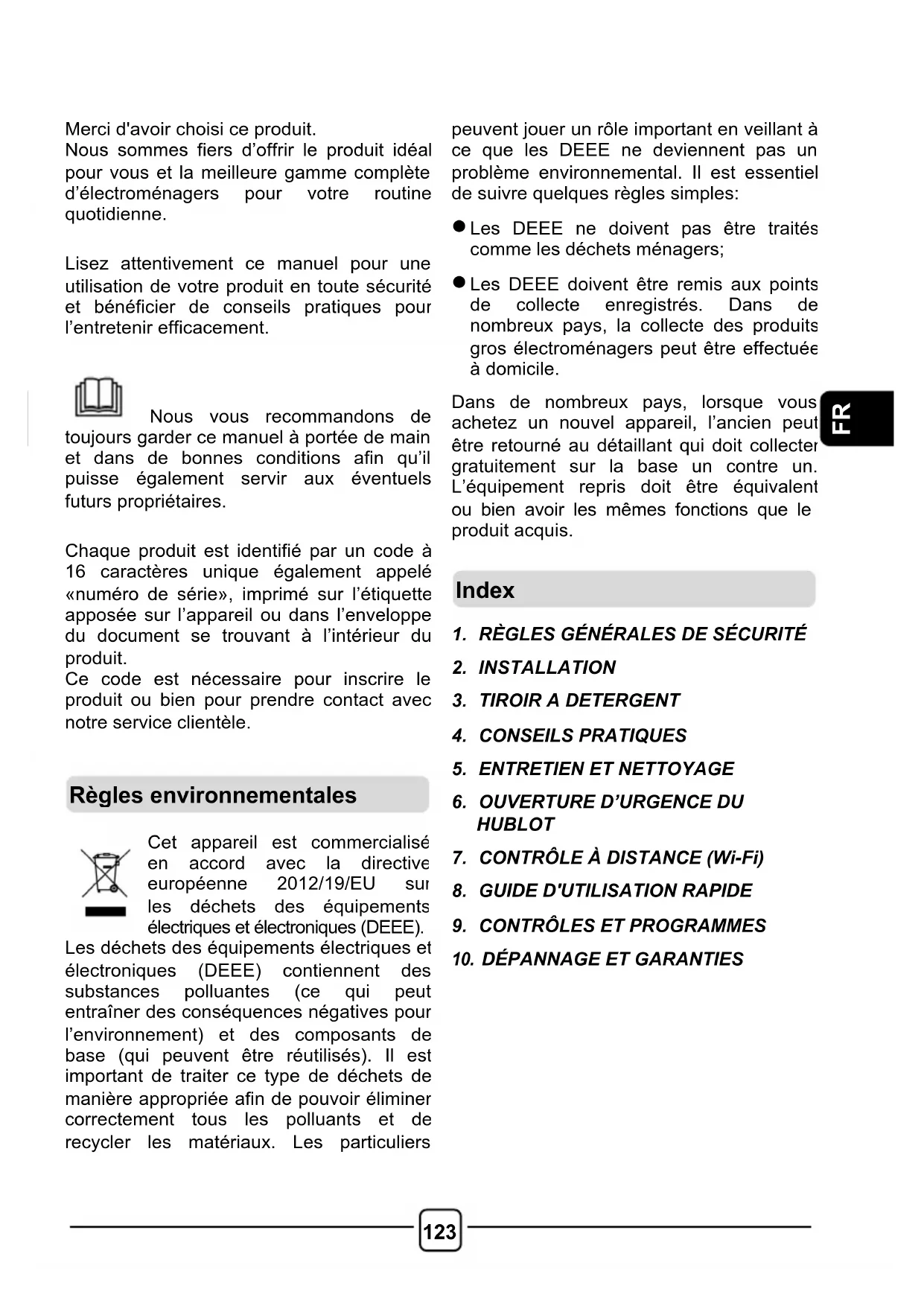 Les DEEE doivent être remis aux points de collecte enregistrés. Dans de nombreux pays, la collecte des produits gros électroménagers peut être effectuée à domicile.