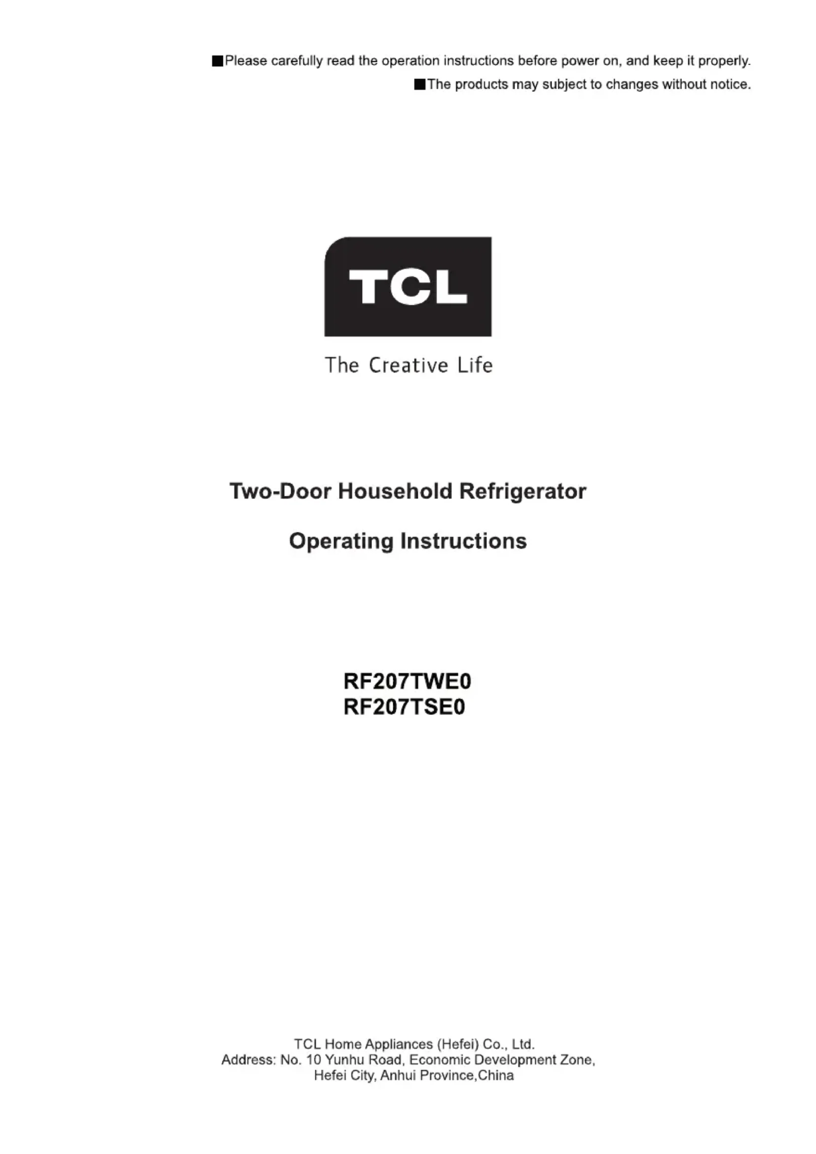 RF207TWE0 - Réfrigérateur TCL - Notice d'utilisation et mode d'emploi gratuit