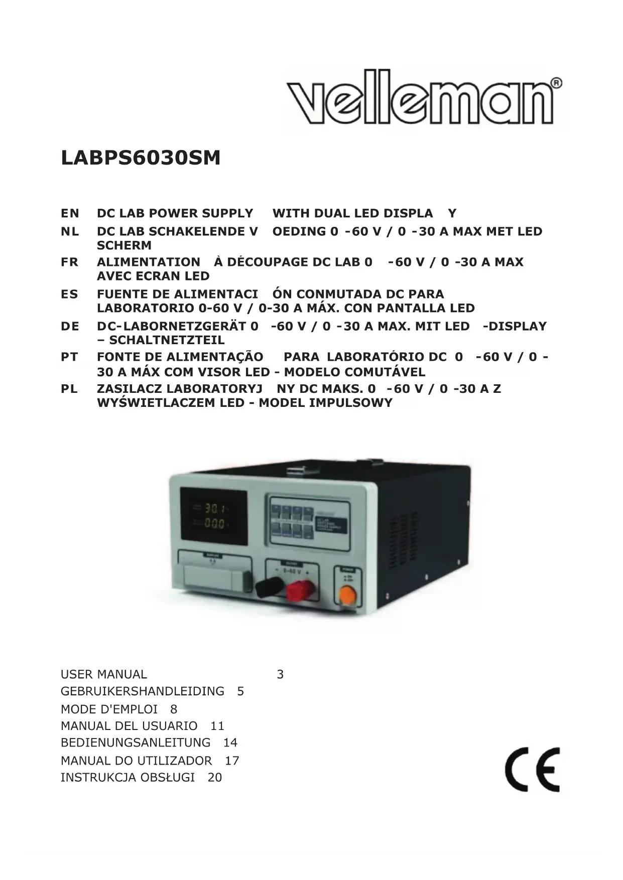 Retrouvez gratuitement la notice de l'appareil LBPS3060SM VELLEMAN au format PDF.