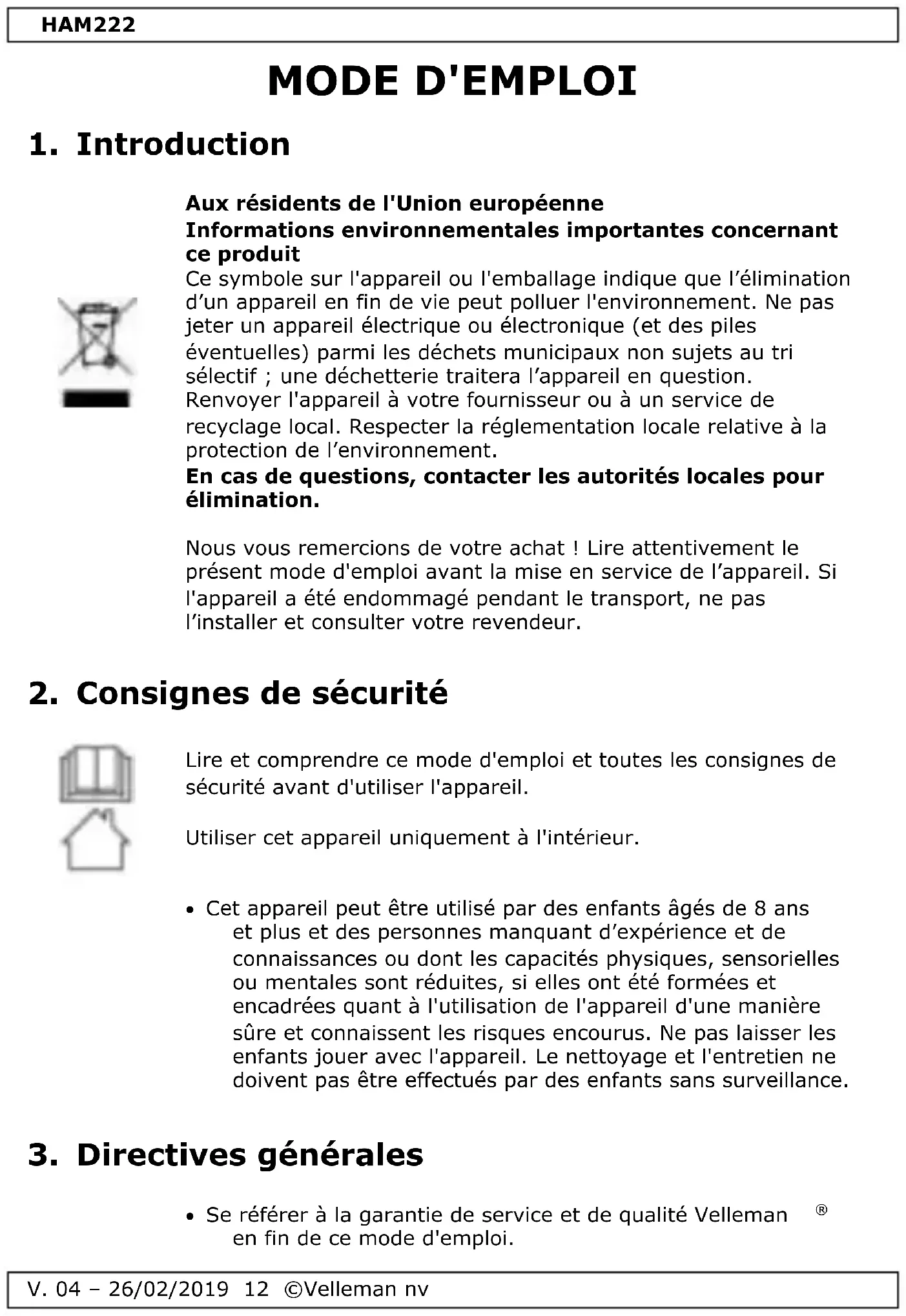 Retrouvez gratuitement la notice de l'appareil HAM222 VELLEMAN au format PDF.