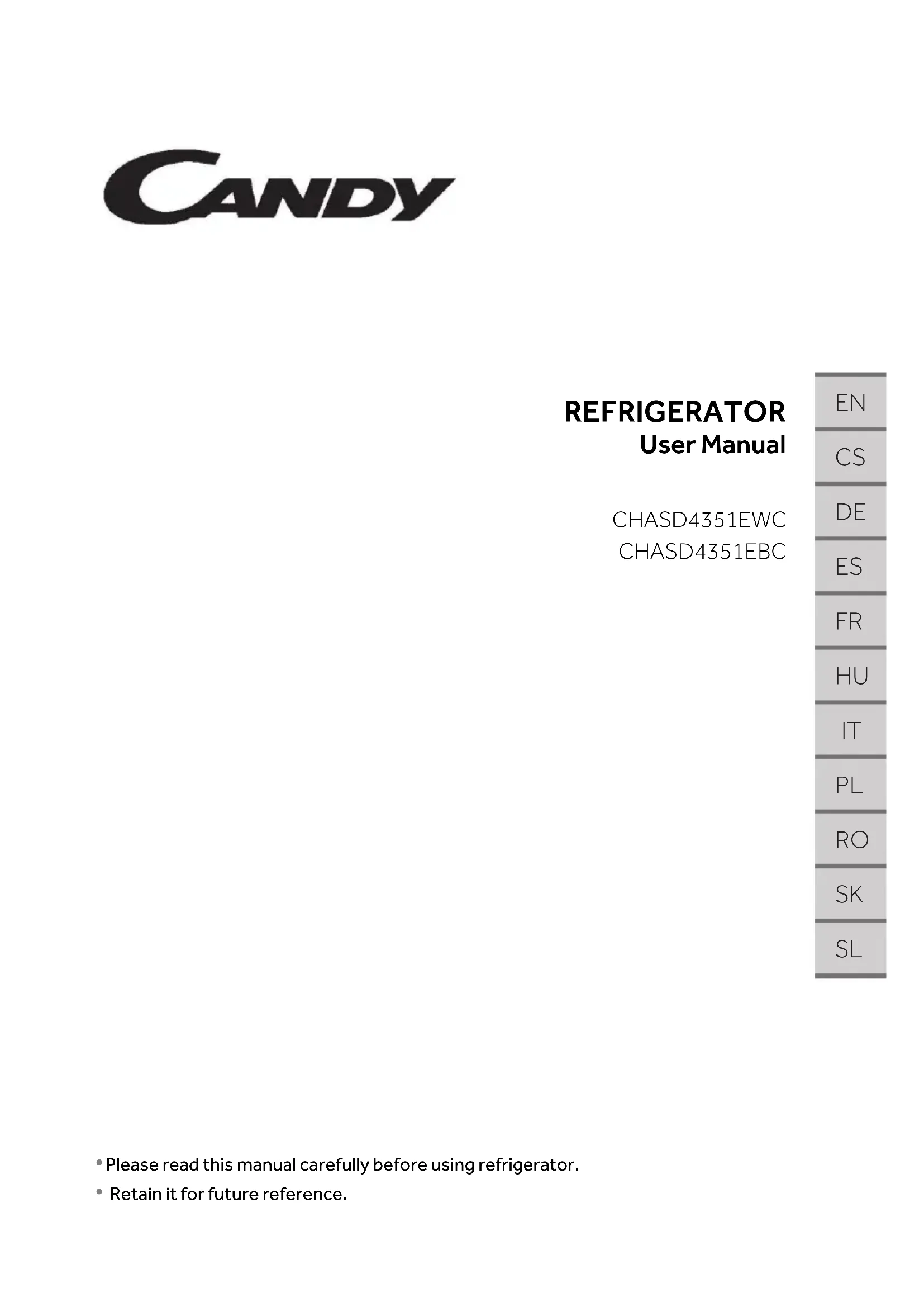 CHASD4351EWC - Réfrigérateur CANDY - Notice d'utilisation et mode d'emploi gratuit